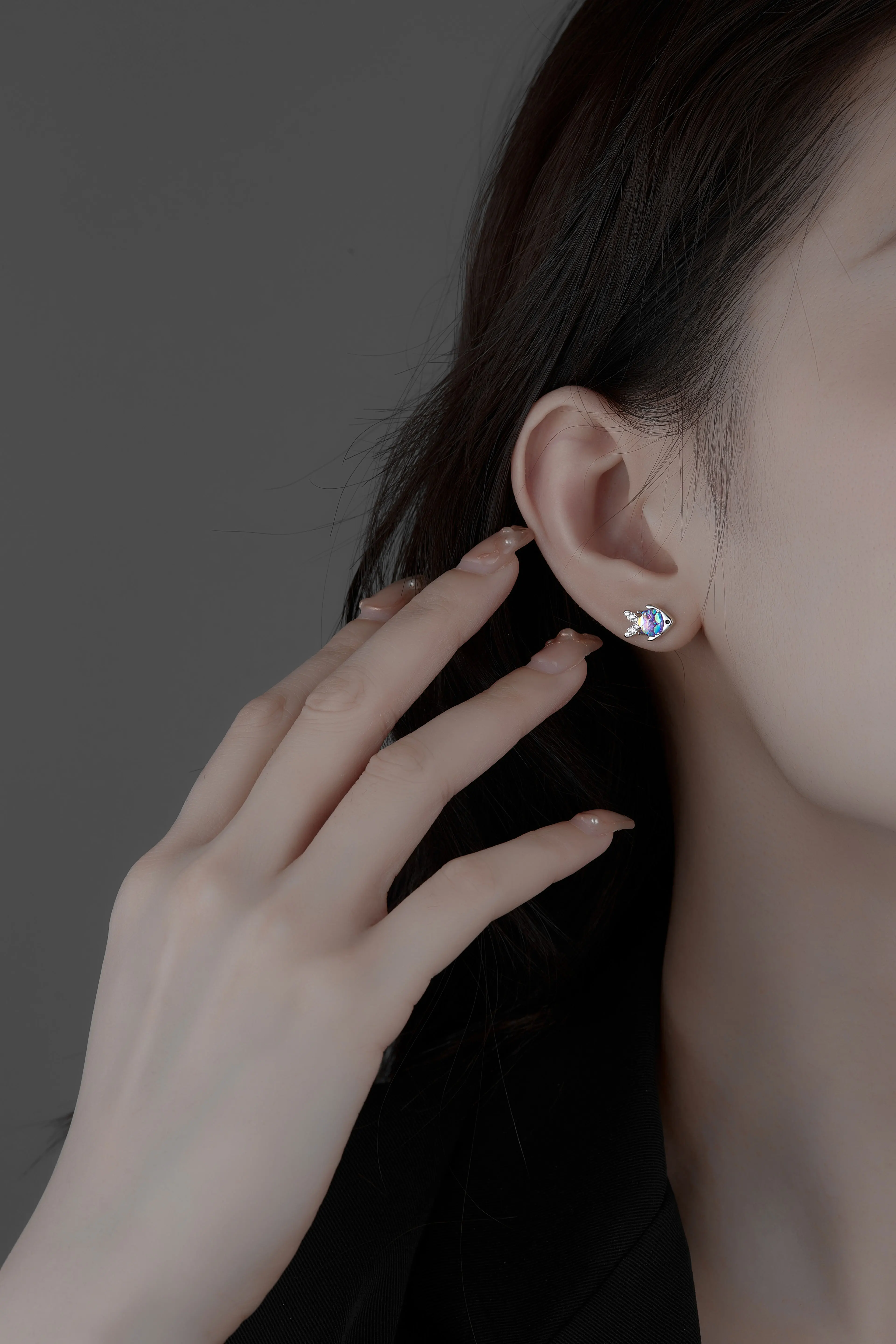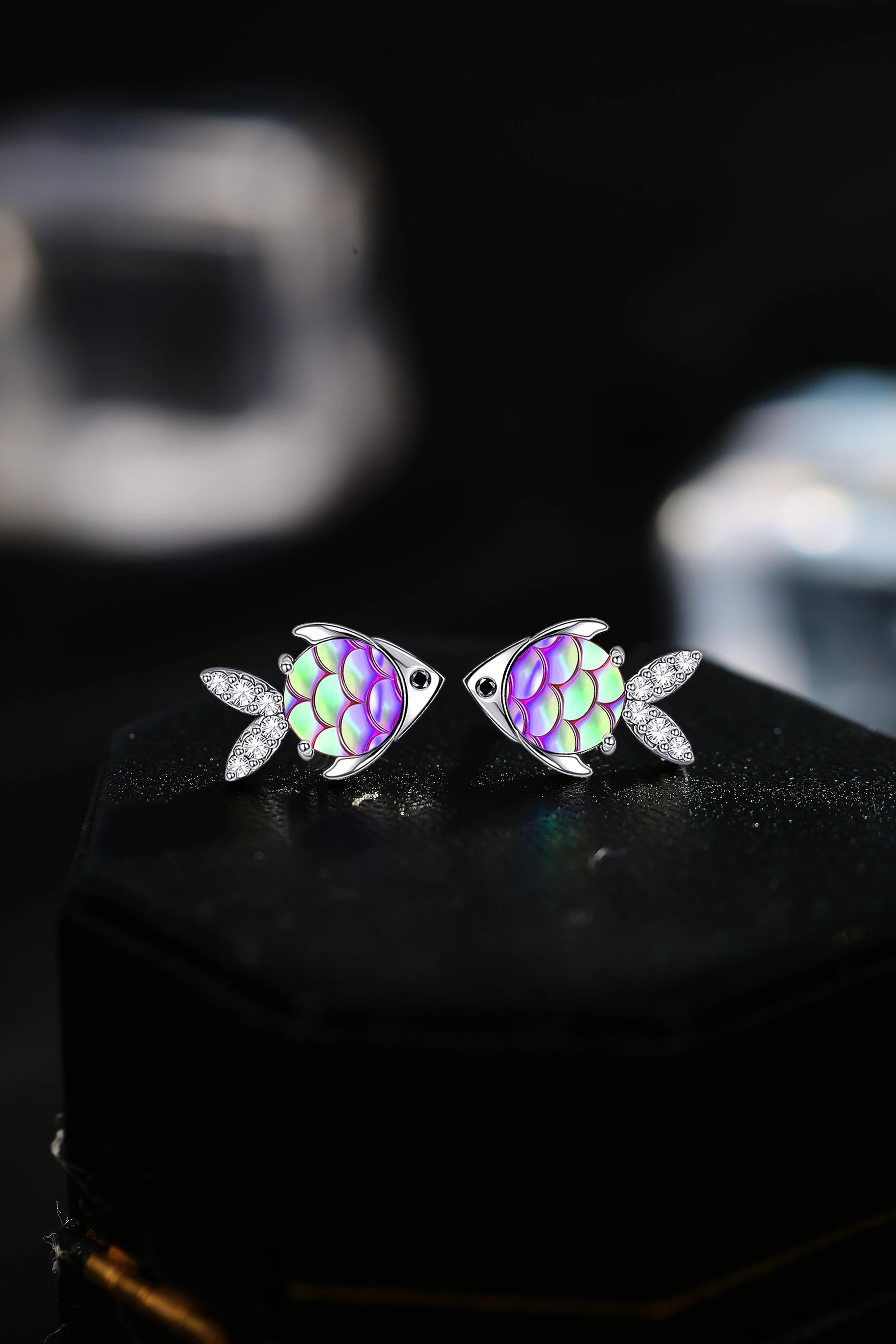 Милые серьги-гвоздики из стерлингового серебра 925 пробы для женщин, Lucky Angel, рыбное сердце, многоцветный цирконий, новые аксессуары, серьги, ювелирные украшения