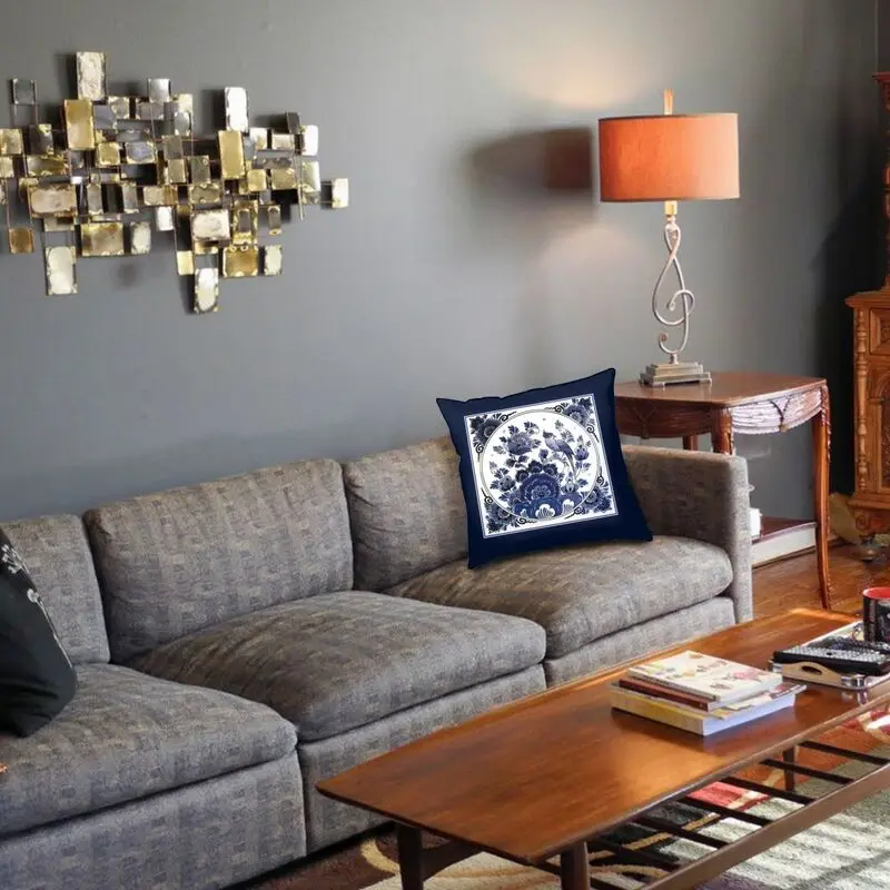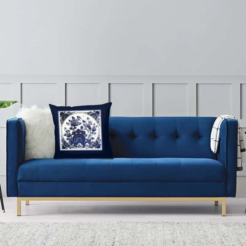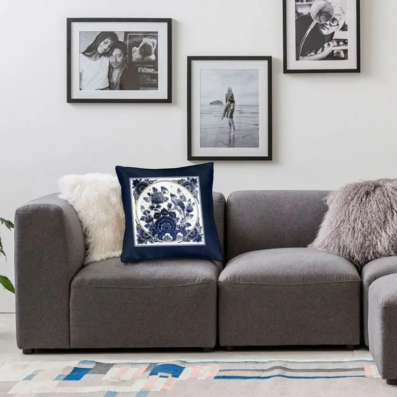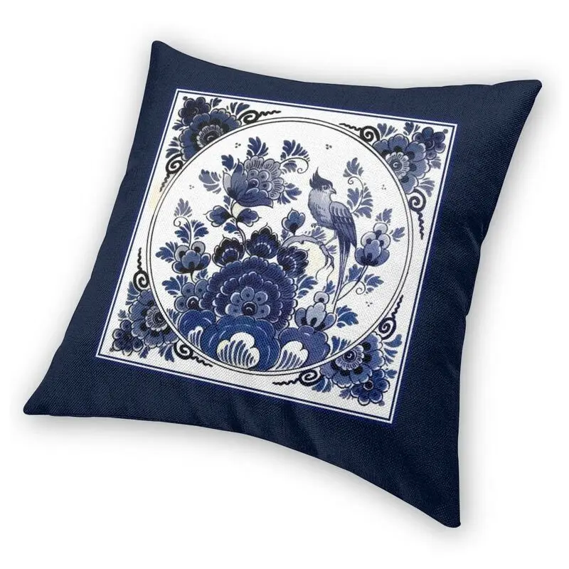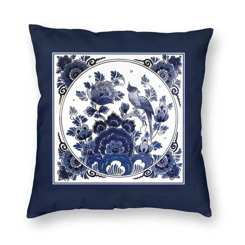 Голландская синяя винтажная Подушка Delft с птицами и цветами, искусственные подушки для дивана, квадратная наволочка