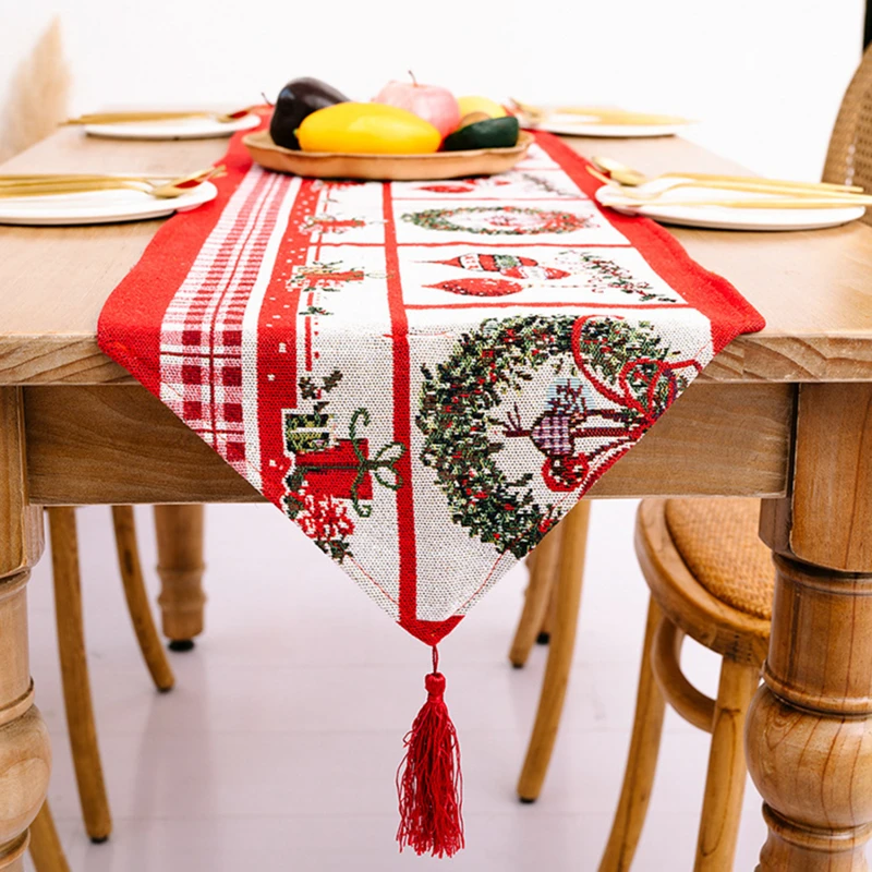 Рождественская вечеринка, льняная настольная дорожка, рандомная для...