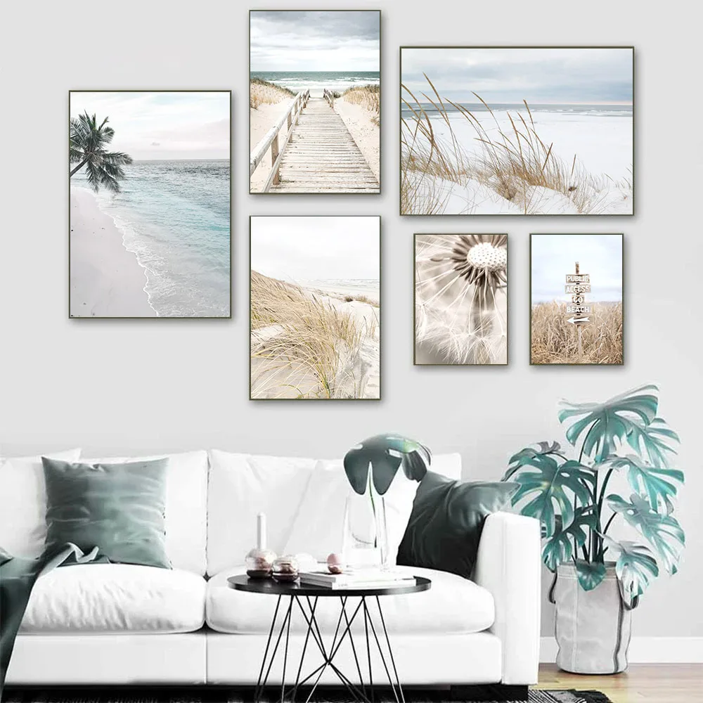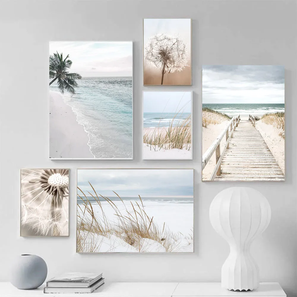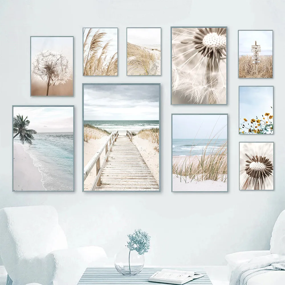 Мост морской пейзаж, холст, живопись, Пляжная трава, тростник, постер, Одуванчик, Настенная печать, скандинавские настенные картины для декора гостиной