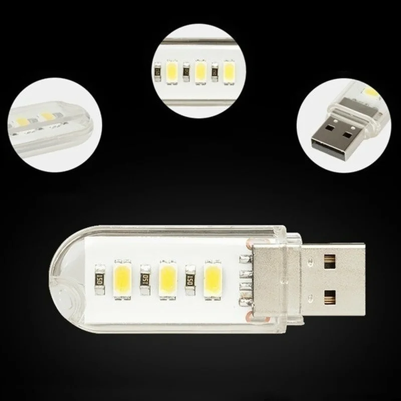 Портативный мини-USB ночсветильник 3 светодиода белыйтеплый белый л...