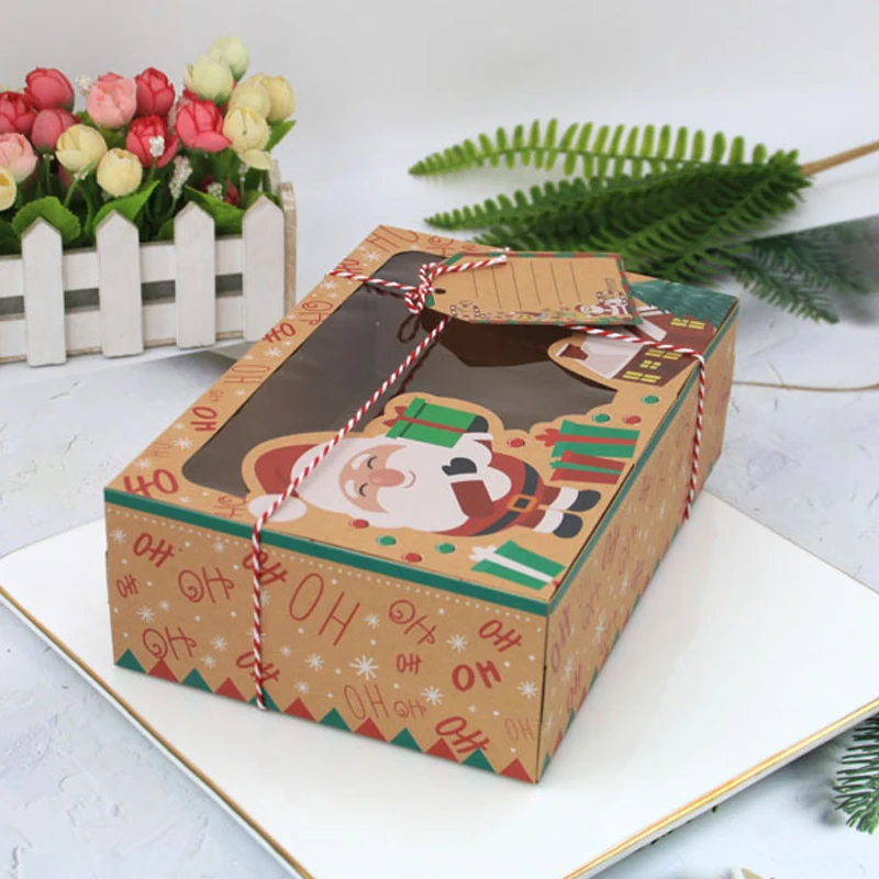 12 шт. бумажные подарочные коробки большого размера для рождественских конфет, тортов, печенья, Подарочная коробка с снеговиком, Санта-Клаусом, Подарочная открытка
