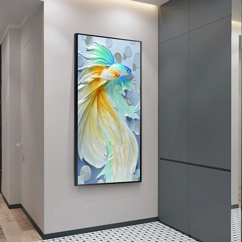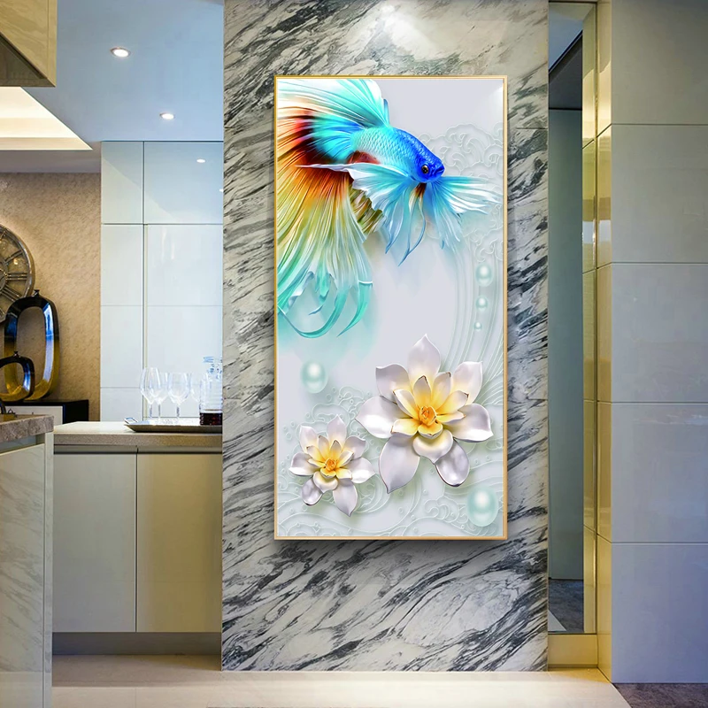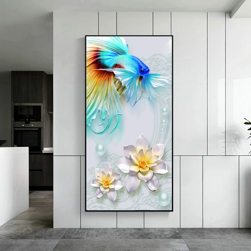 Красивая Золотая рыбка, изящные цветы, Художественная Картина на холсте, 3D плакаты и принты, Современная Настенная картина для гостиной, домашний декор