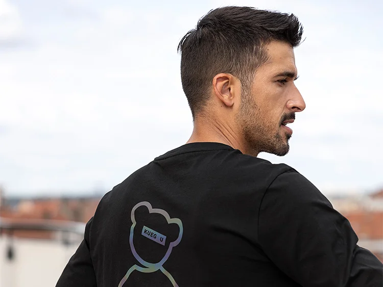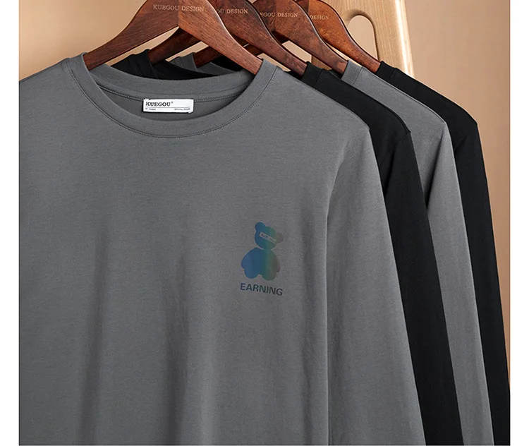 Мужская футболка с длинным рукавом KUEGOU, черная футболка с флуоресцентным рисунком, Новинка осени 2021, 100%