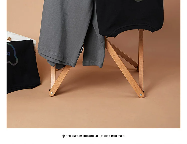 Мужская свободная футболка KUEGOU, черная футболка с коротким рукав...
