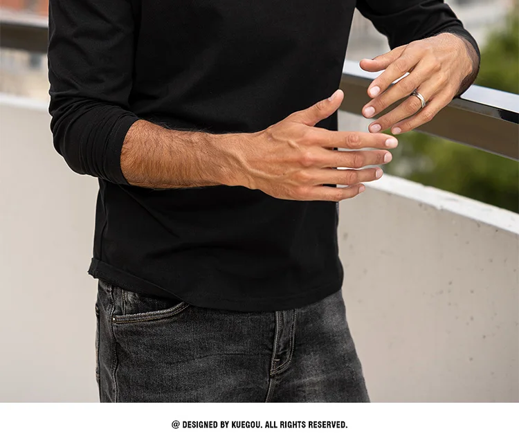 Мужская футболка с длинным рукавом KUEGOU, черная футболка с длинны...