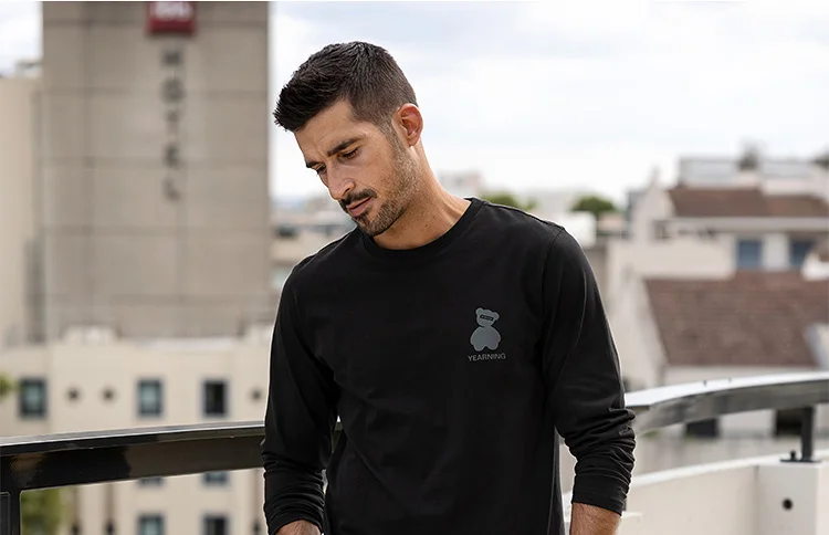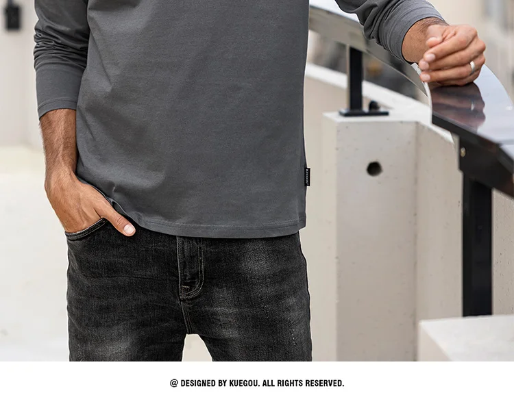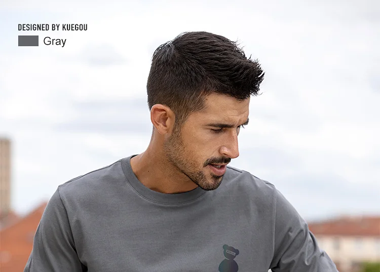 Футболка мужская с длинным рукавом KUEGOU, базовая тенниска из 100%...