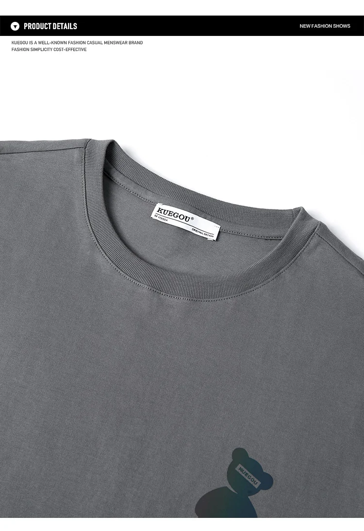 Мужская футболка KUEGOU, с коротким рукавом, с изображением медведя...