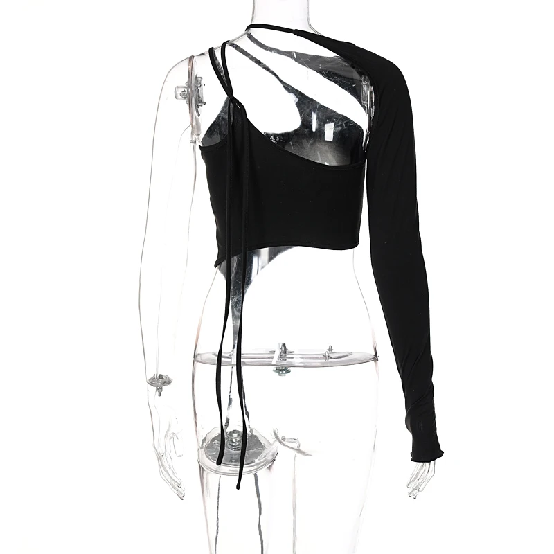Женский однотонный топ на одно плечо, с открытой спиной