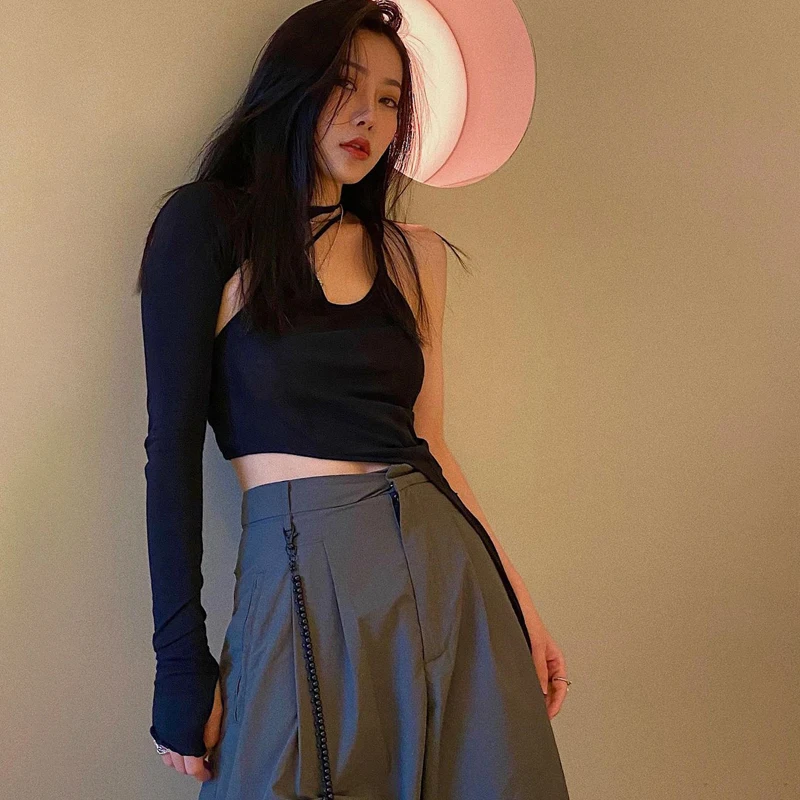 Hugcitar 2021, летний женский однотонный топ с лямкой на одно плечо...