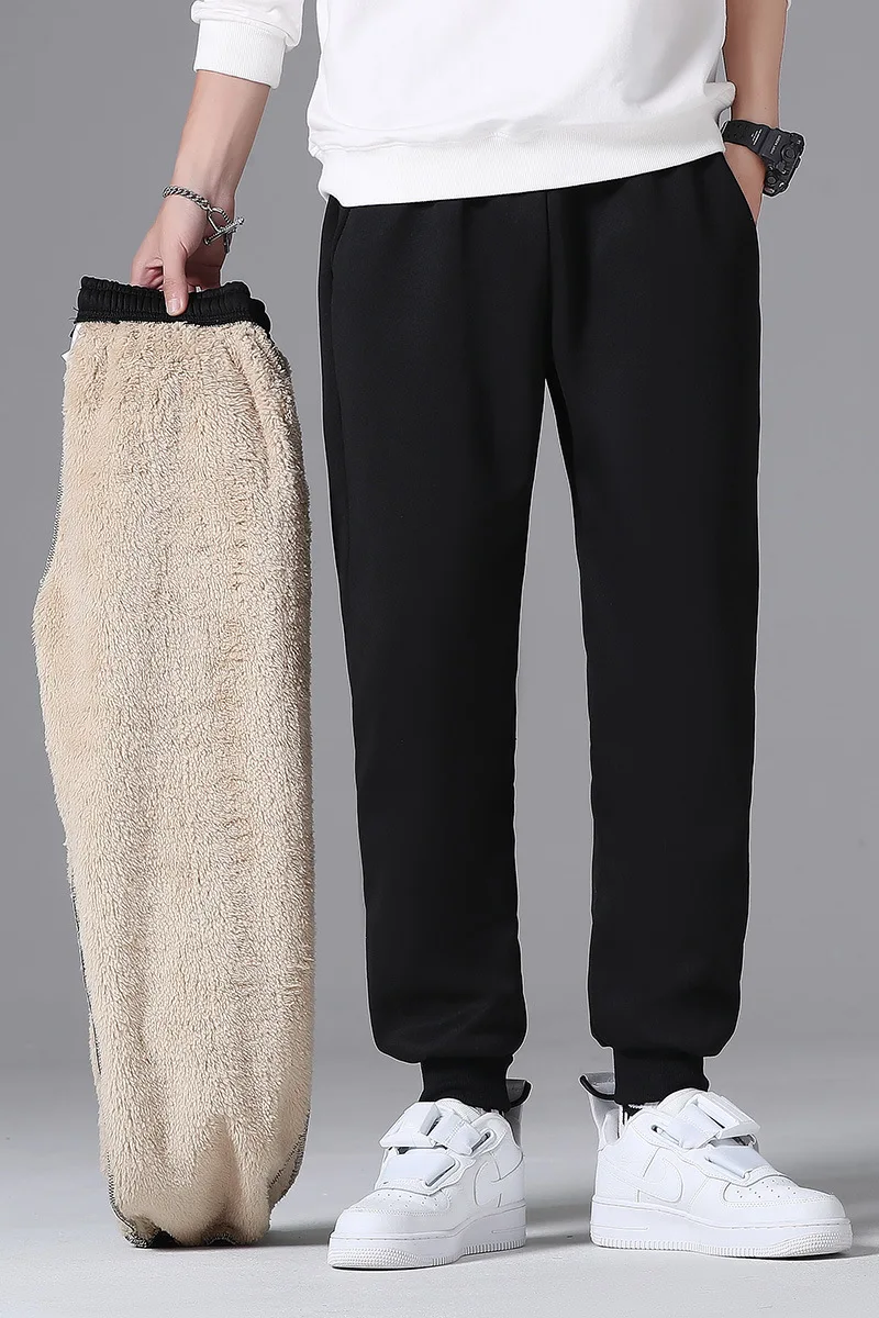 Thicken Pants Men Warm TrousersThick Wool Joggers Fleece Trousers