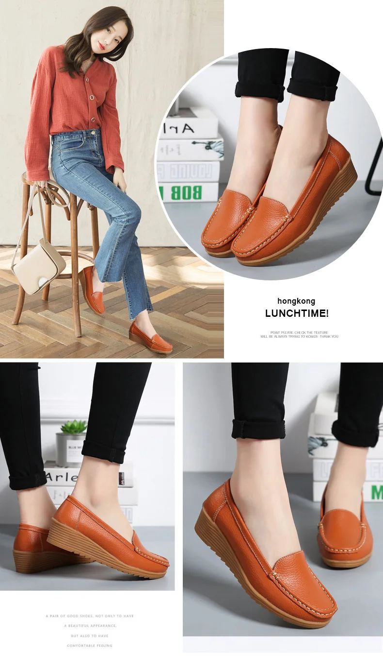 Женская обувь на плоской подошве; Коллекция 2021 года; Сезон весна-лето; Женские повседневные лоферы из натуральной кожи на танкетке; Балетки на плоской подошве; Chaussures Femme