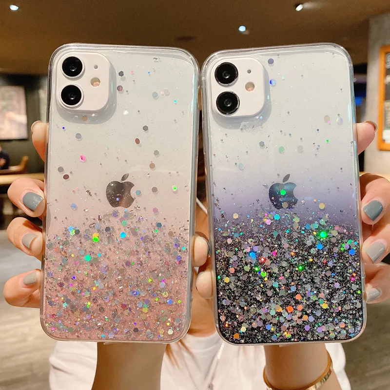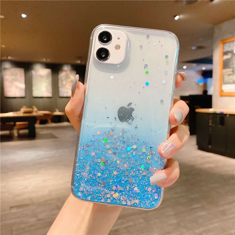 Чехол для iPhone 11, 12, 13 Pro Max, X, XR, XS Max, 7, 8 Plus, SE 2020, прозрачный, с блестками