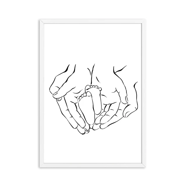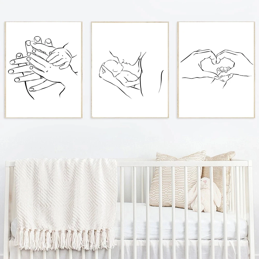 Интерьерная живопись семейный портрет мамина малыш художественные линии Рисование плакаты абстрактные минималистичные руки Сердце стена холст печать живопись.