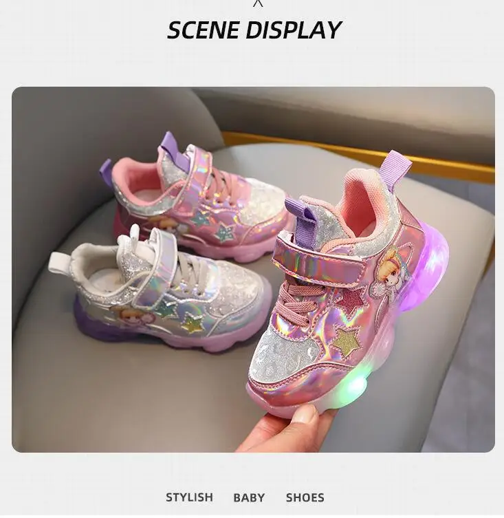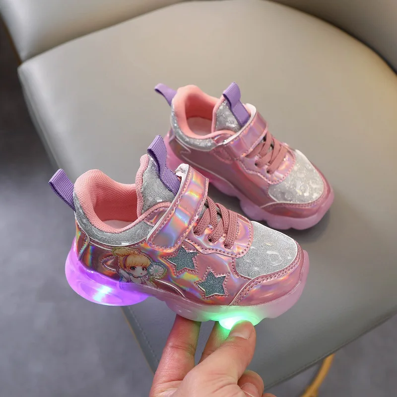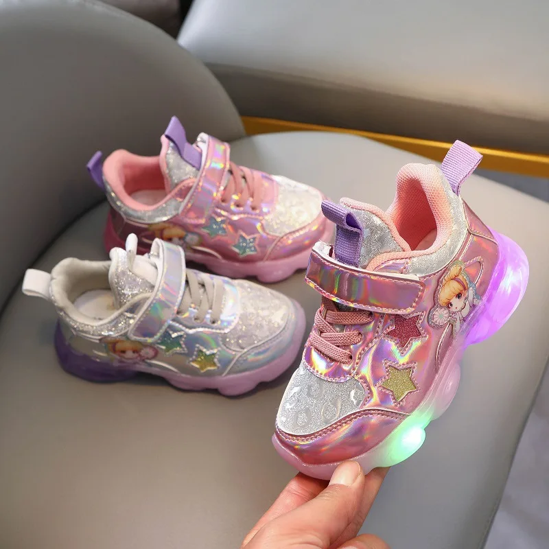 Детские светящиеся кроссовки, повседневная обувь принцессы со светодиодной подсветкой, Детские кроссовки с люминесцентной подошвой