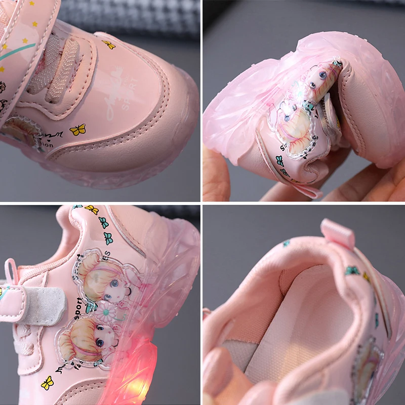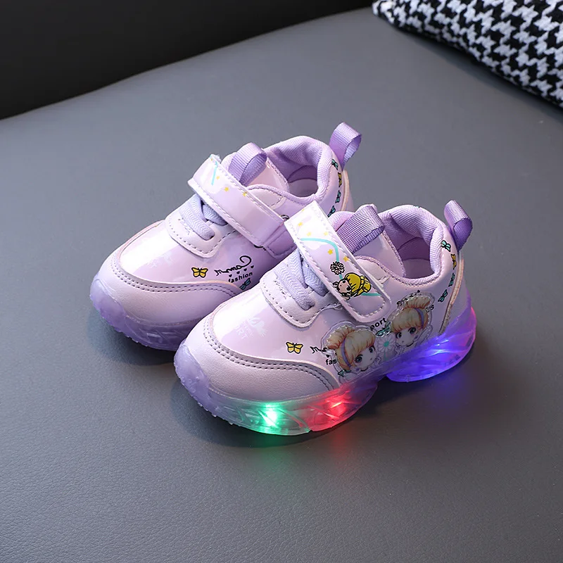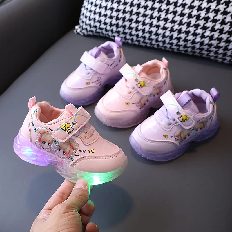 Кроссовки Детские со светодиодной подсветкой, Нескользящие, для принцесс, обувь для начинающих ходить детей, размеры 21-30