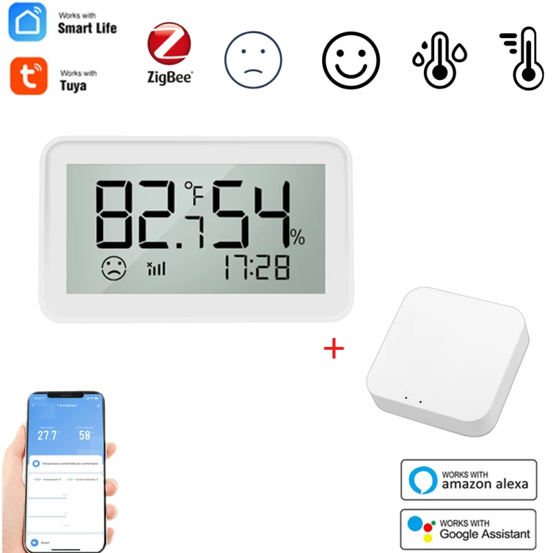 Датчик температуры и влажности Tuya Zigbee с Wi-Fi, комнатный гигрометр, термометр с поддержкой Alexa Google Home Smart Life