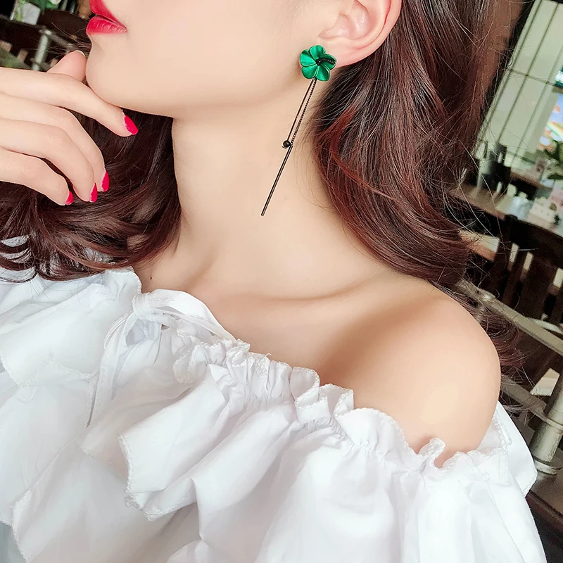 Горячая Распродажа подходящие ко всему серьги в стиле ретро с зелеными цветами и кисточками темпераментная Длинная подвеска для ушей стильные женские серьги-гвоздики