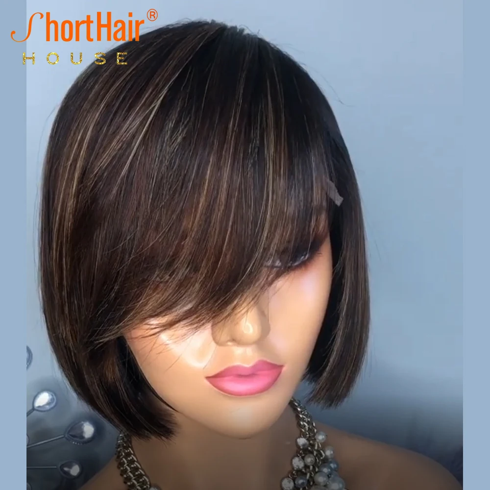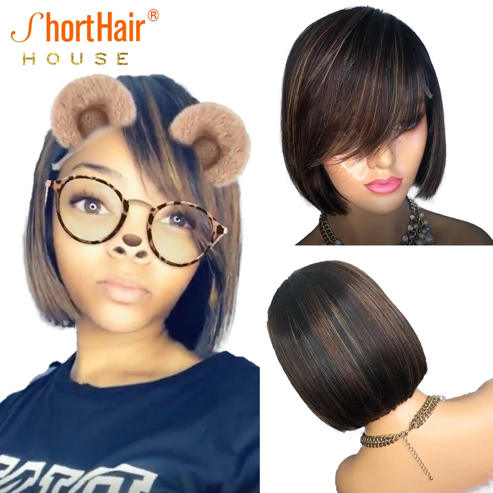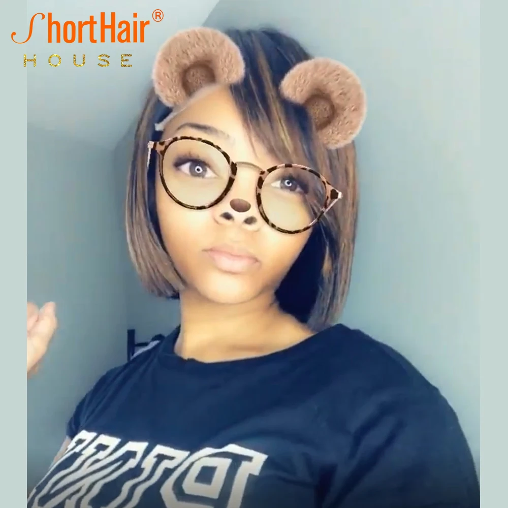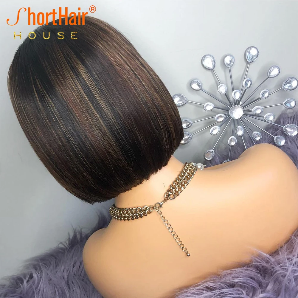 Хайлайтер Ombre боб парики черные и коричневые цветные парики для женщин человеческие волосы 13x 4 кружевной передний парик с бахромой бразильские волосы