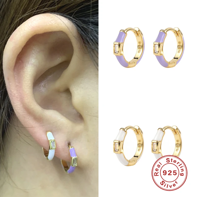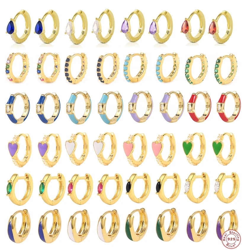 Разноцветные Круглые серьги Circel с кристаллами из стерлингового серебра 925 пробы в виде капли, циркониевое серьги-кольца Huggie для женщин, эмаль orecchini donna