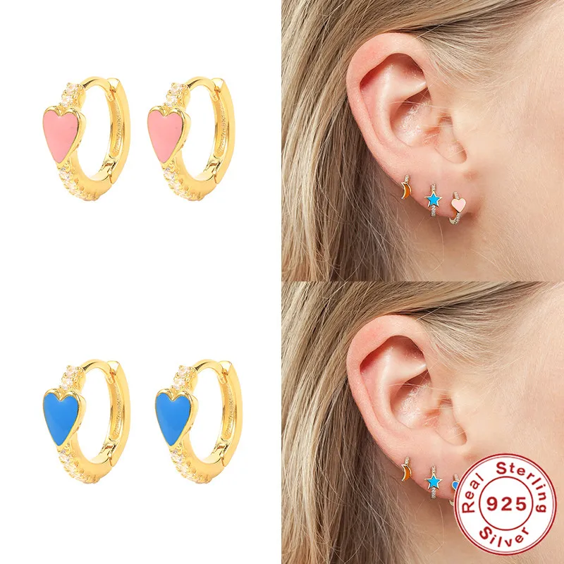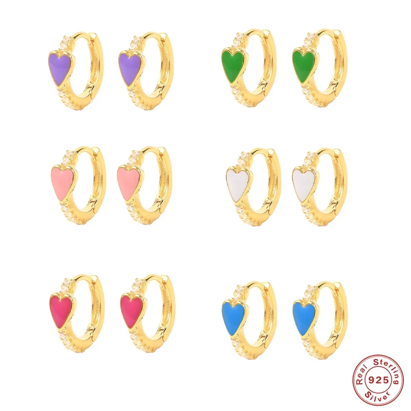 Feature 6Dripping Oil Love Heart Circel Earrings