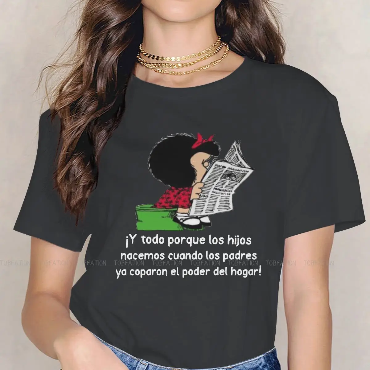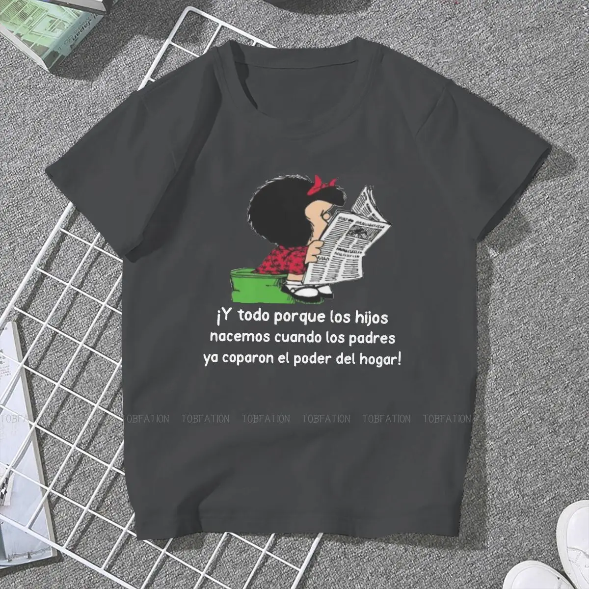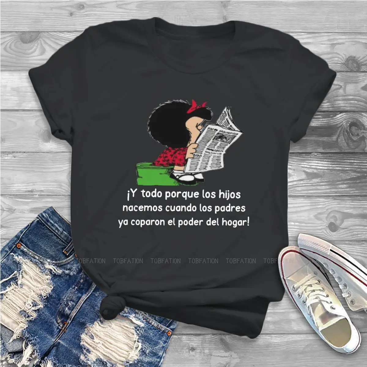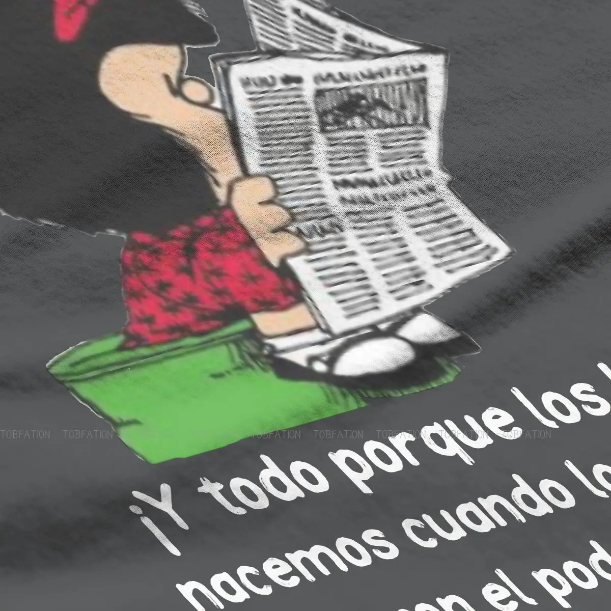 Футболка с газетной надписью для девочек Mafalda, комикс, топы Quino, милая женская футболка 5XL, мягкая свободная футболка с принтом