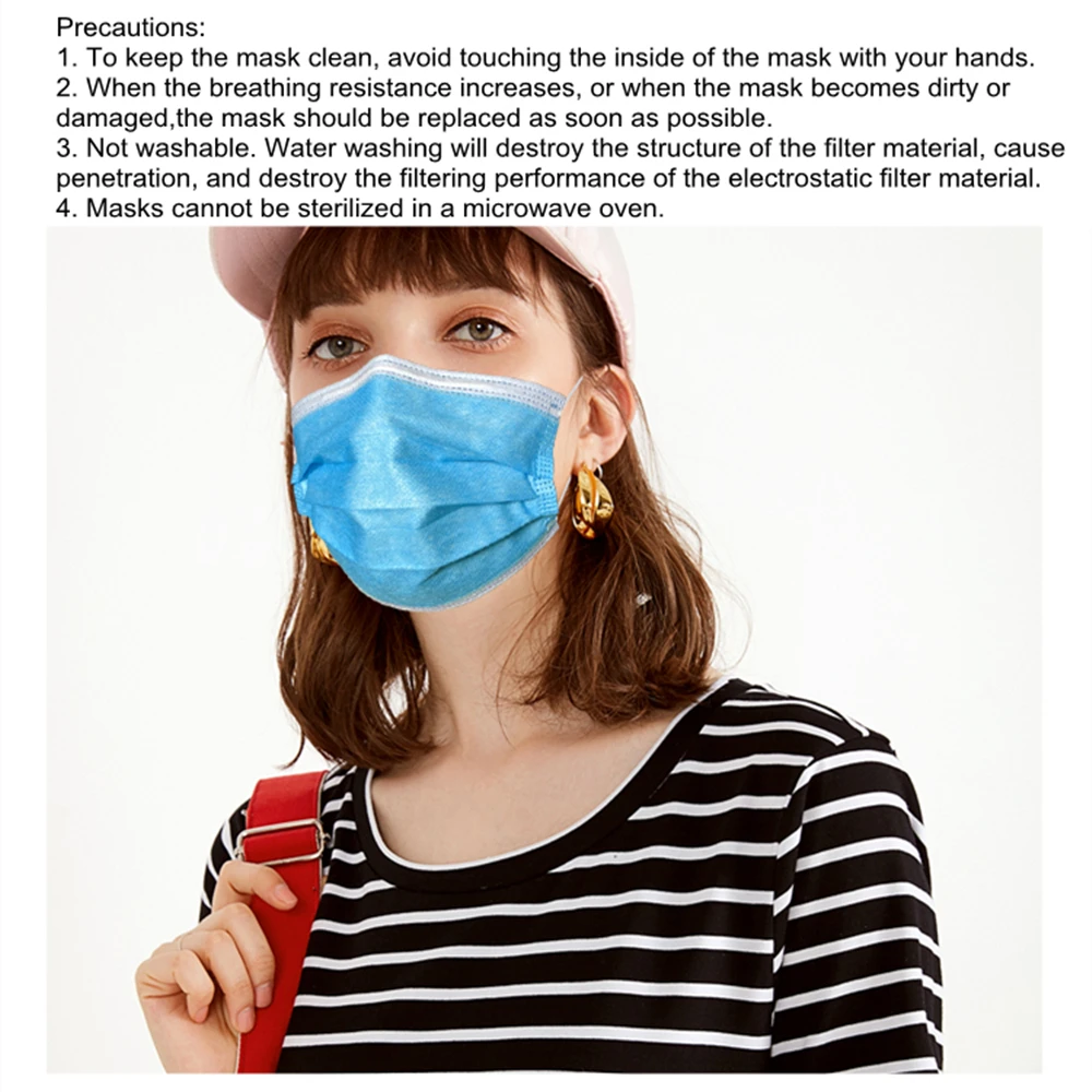 Параметры продукта:Материал: трехслойный нетканый материалПодходящий сезон: Весна, Осень, Зима, ЛетоЦвет: синий/розовый/черный/белый/фиолетовыйСтиль маски: Тип ухаПлоский Размер: 6,8 дюймов/3,9 дюймов