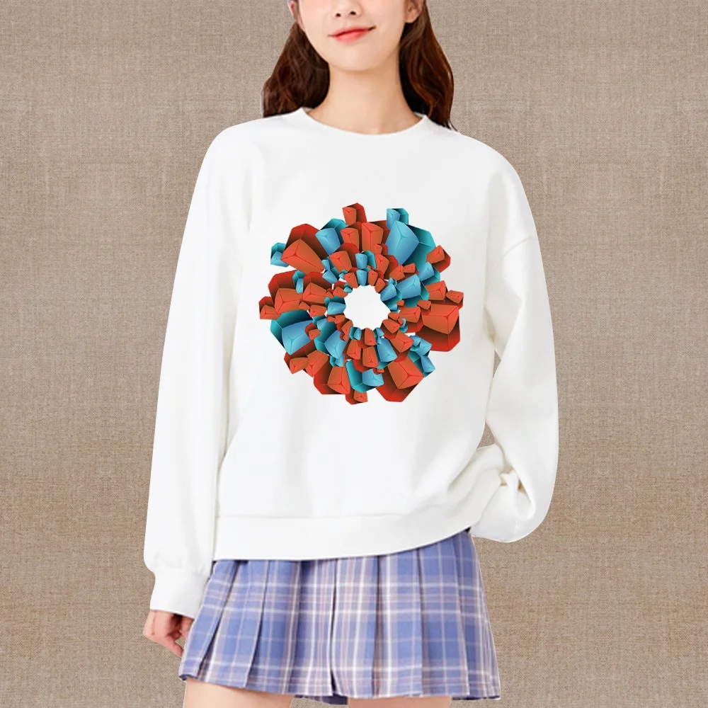 Женская одежда, модный свитер, Белый пуловер, топ, серия 3D принтов, о-образный вырез, Повседневная Осенняя теплая толстовка с длинными рукавами