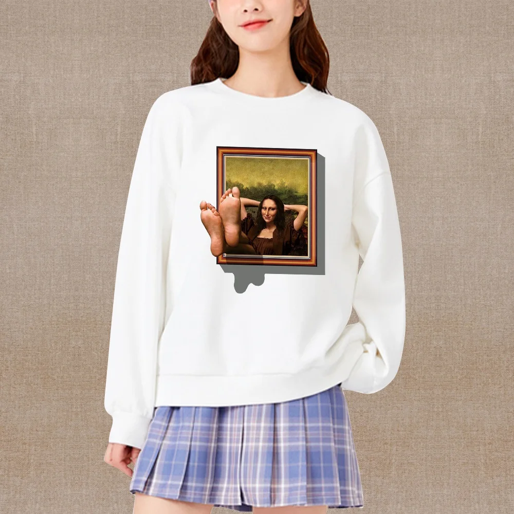 Женская одежда, Модный пуловер, белые топы, серия с забавным принто...