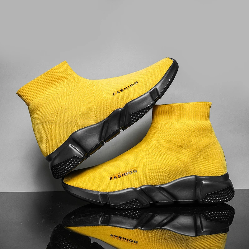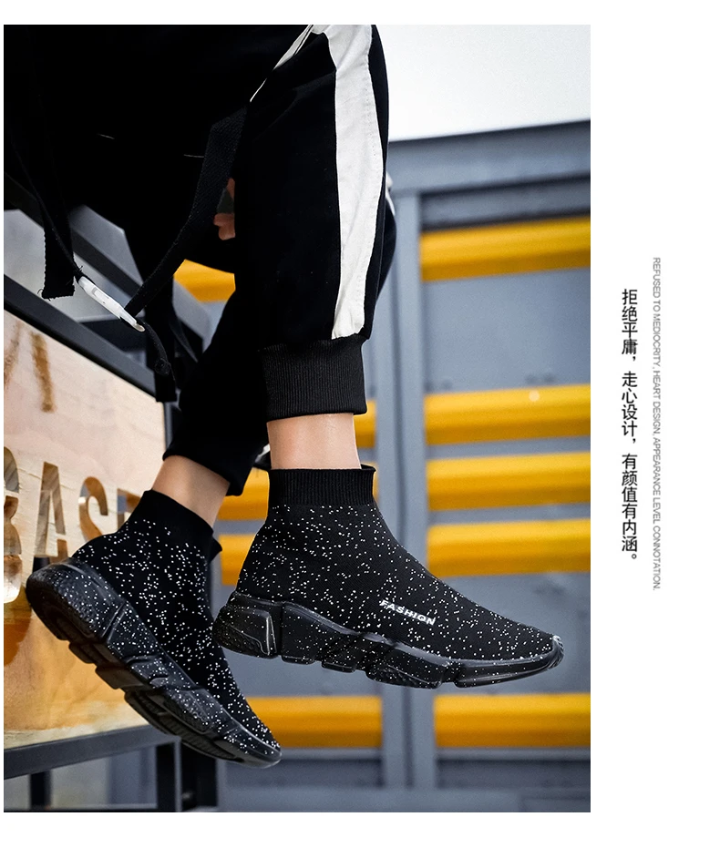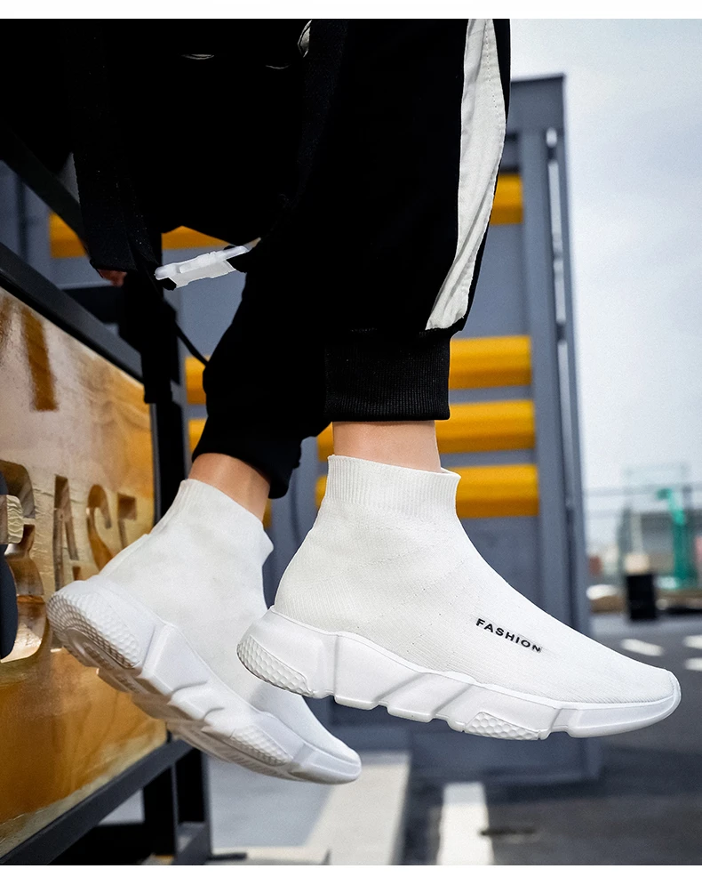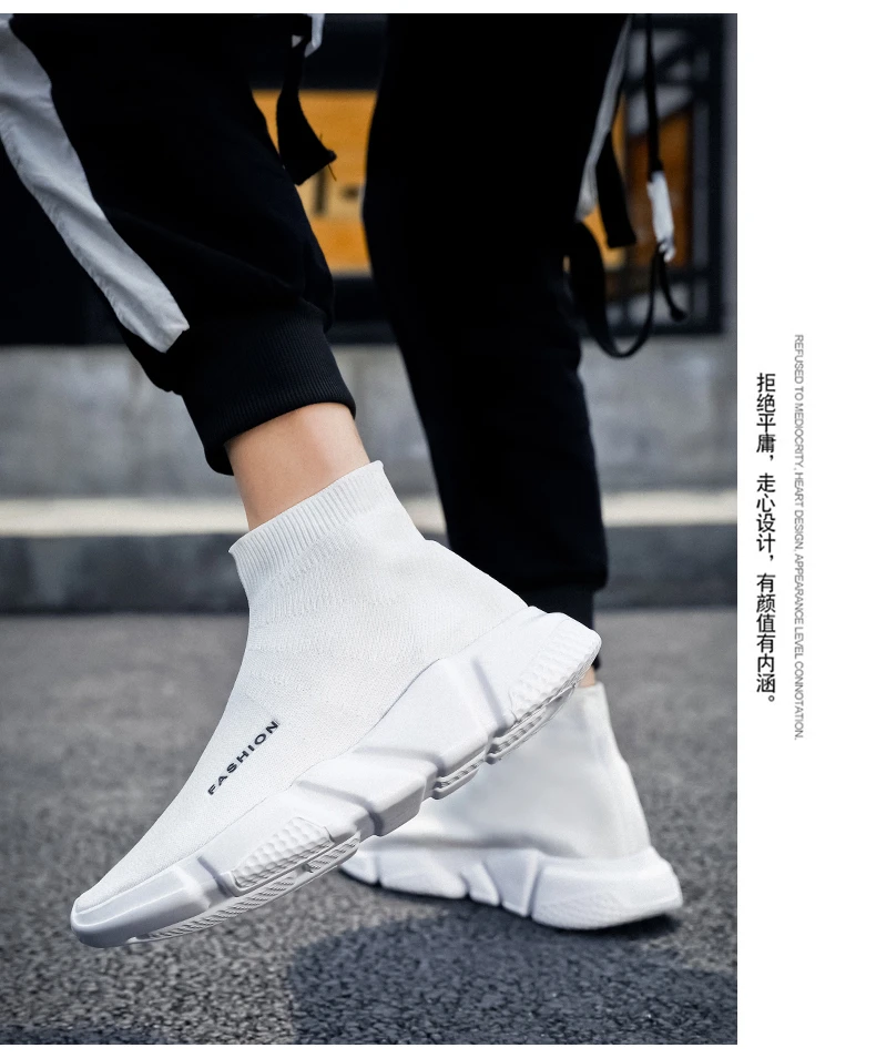 Кроссовки-носки для мужчин и женщин, высокие, без шнуровки, спортивная мягкая Уличная обувь для тренировок, белые, большие размеры