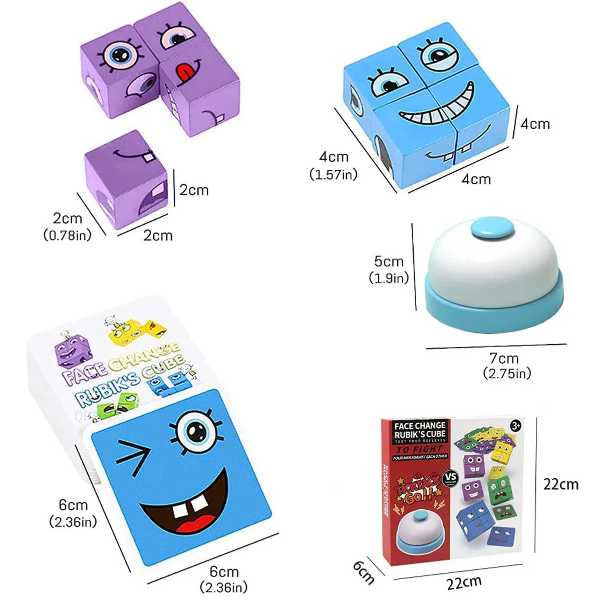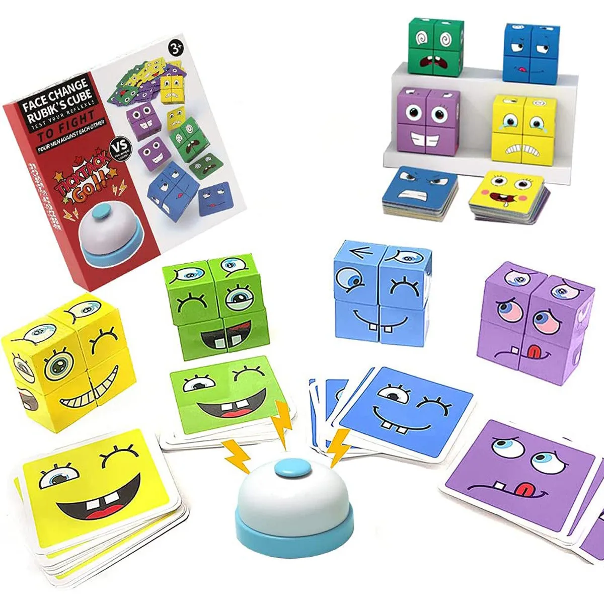 ДеревянныйИгрушки с выражениями Деревянный Магический Куб с рисунком лица строительные блоки образовательныеМонтессори игрушки соответствующие блоки головоломки для детей, поставляются с 16 штук дереваЛобзики, Звонок и 64 карты