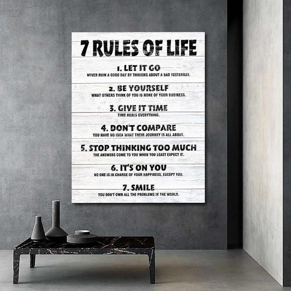 Современная Картина на холсте семь вдохновляющих фраз текст 7 правил жизни постер печать для гостиной домашний декор куклор без рамки