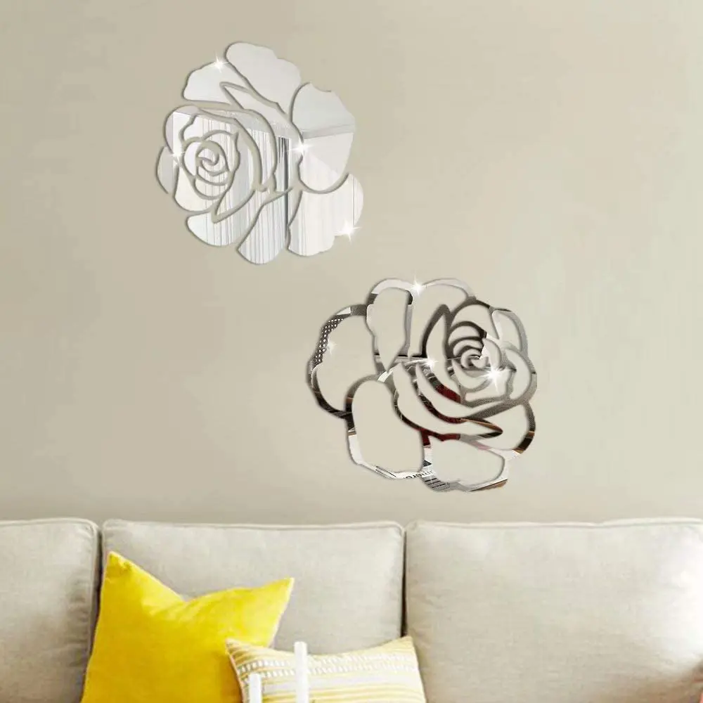 2021 роза цветок 3D декор для комнаты ванной акриловая стена сделай сам зеркало Lrregular отражающее зеркало украшение для гостиной