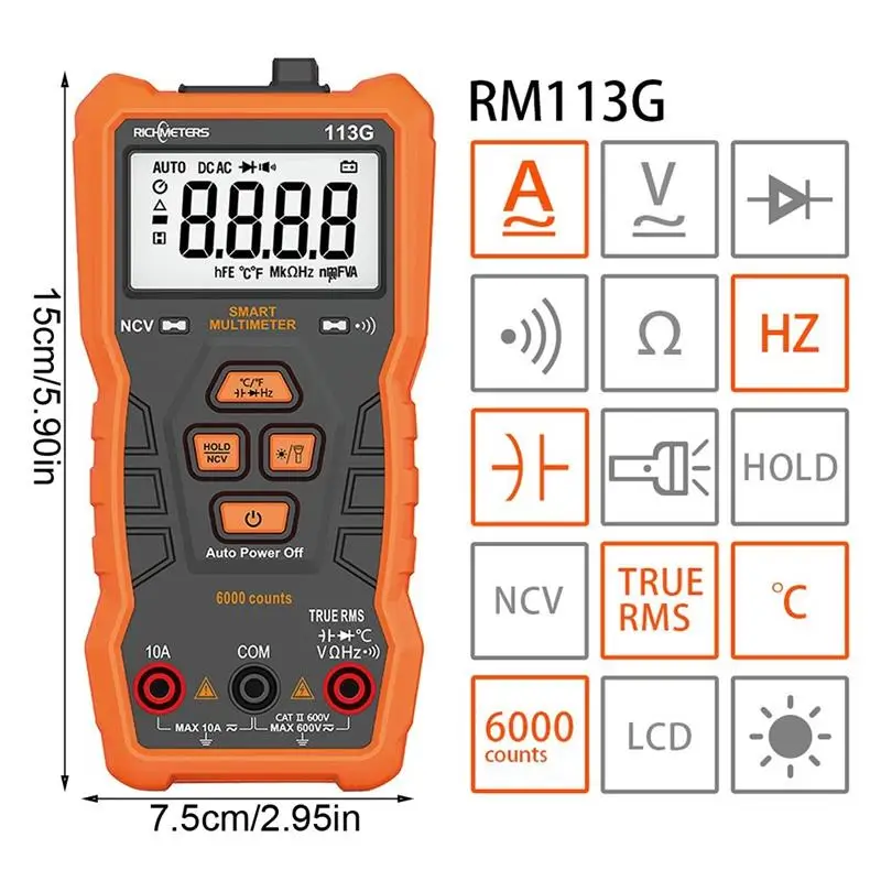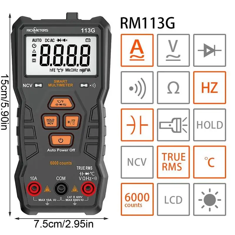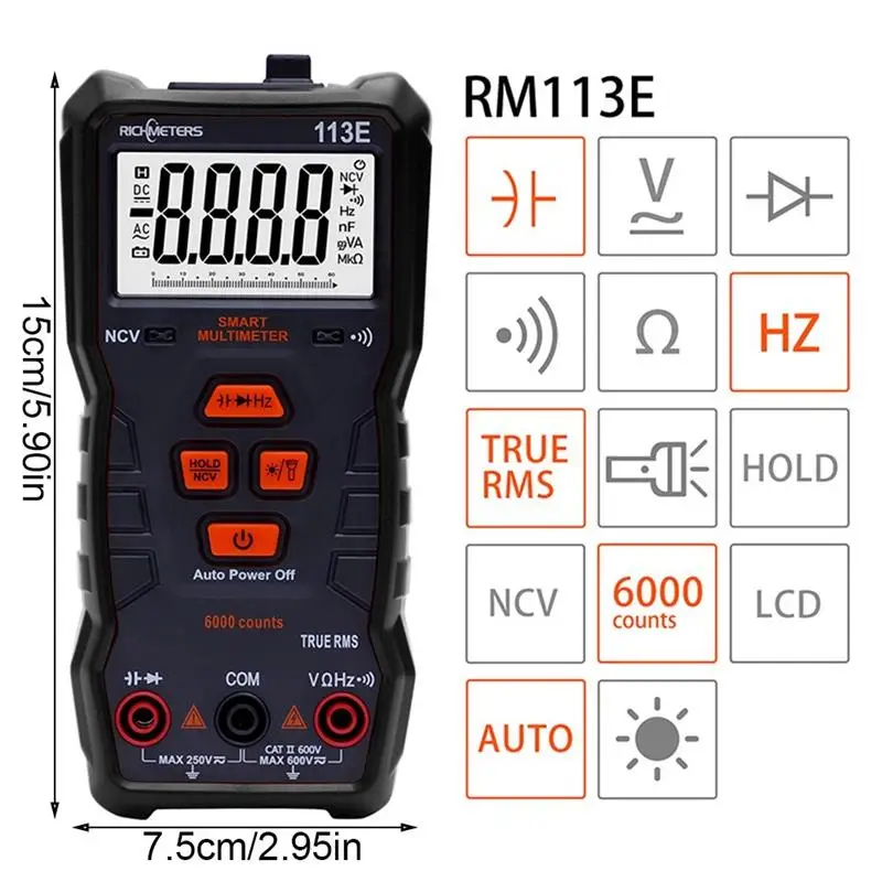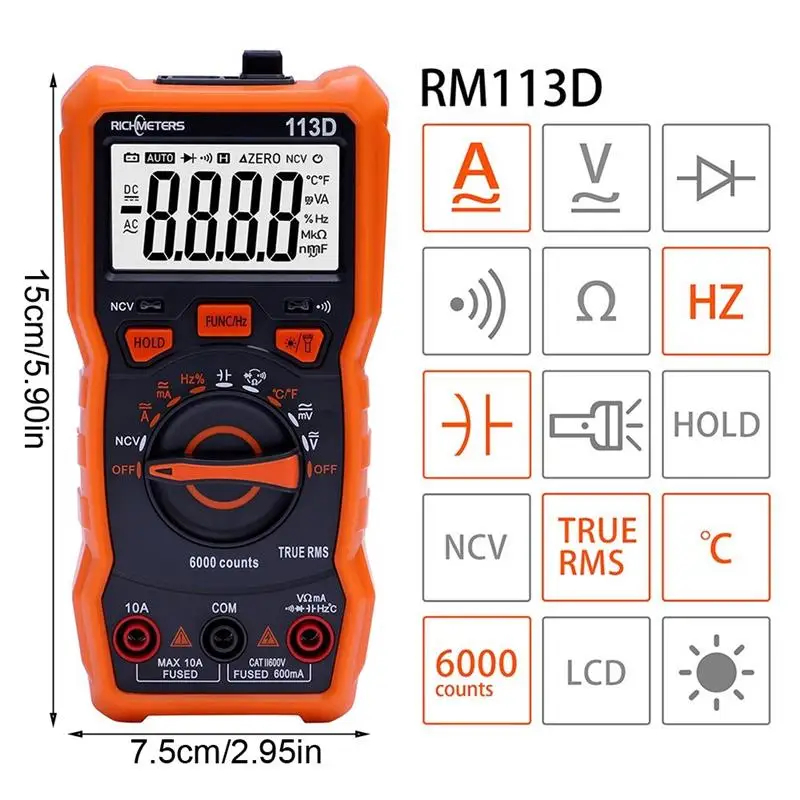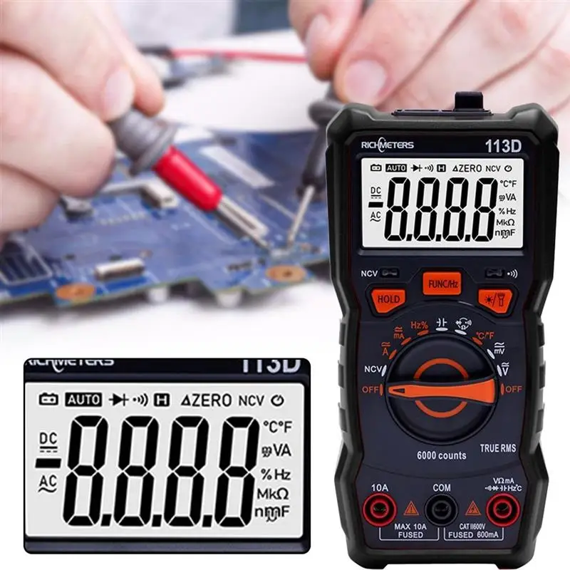 Цифровой мультиметр RM113E NCV, 6000 отсчетов, автоматическая подсветильник ка, большой экран, сопротивление переменногопостоянного напряжения, диодные приборы
