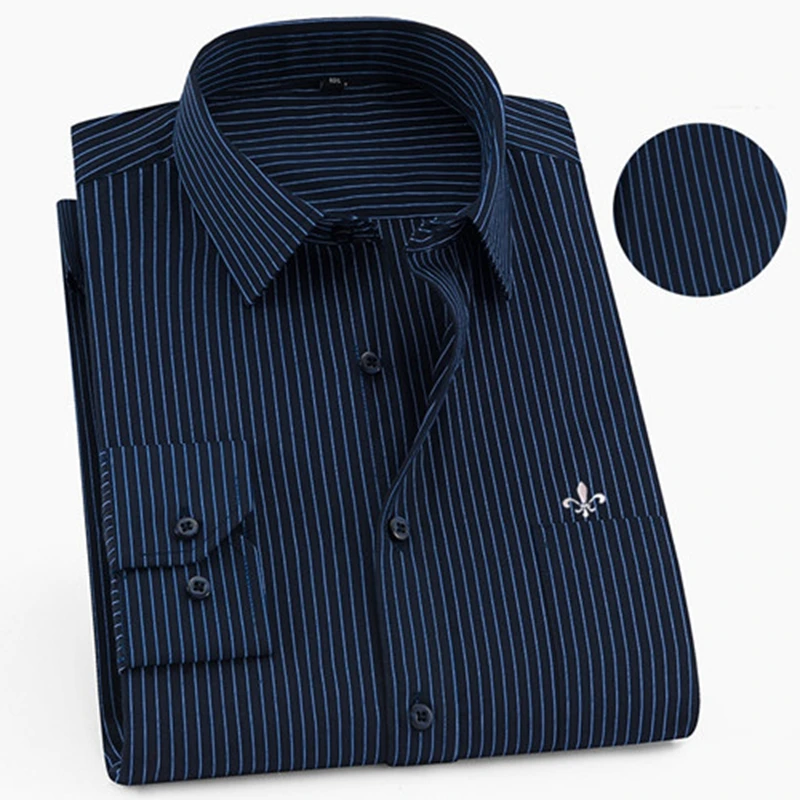 Dudalinas Camisa Social Masculino, полосатые мужские облегающие рубашки, повседневные рубашки с длинным рукавом, деловые мужские рубашки