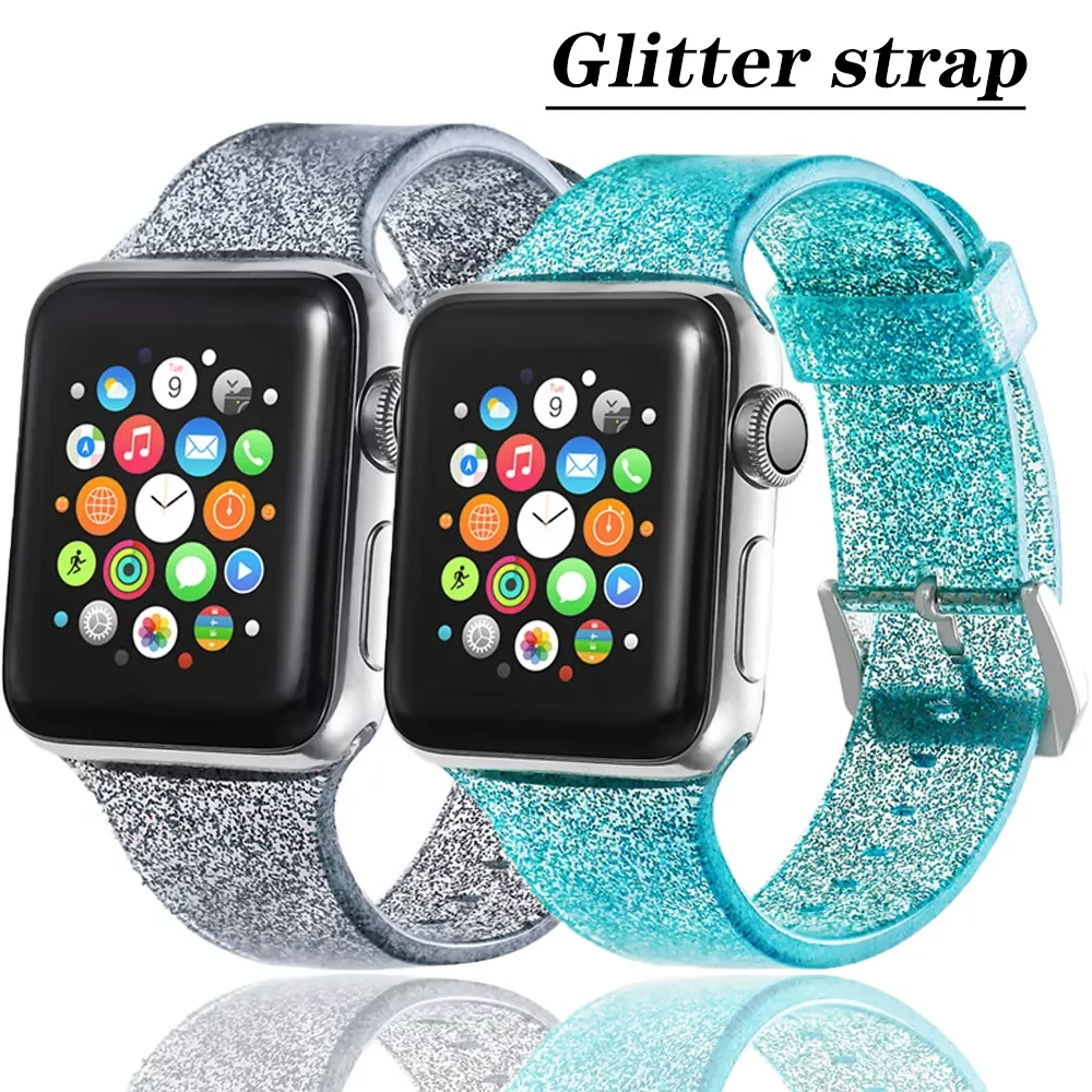 Ремешок силиконовый для Apple Watch Band 40 мм 44 мм 41 мм, блестящий браслет для iwatch 38 мм 42 мм 45 мм, iwatch 5 4 3 se 6 7