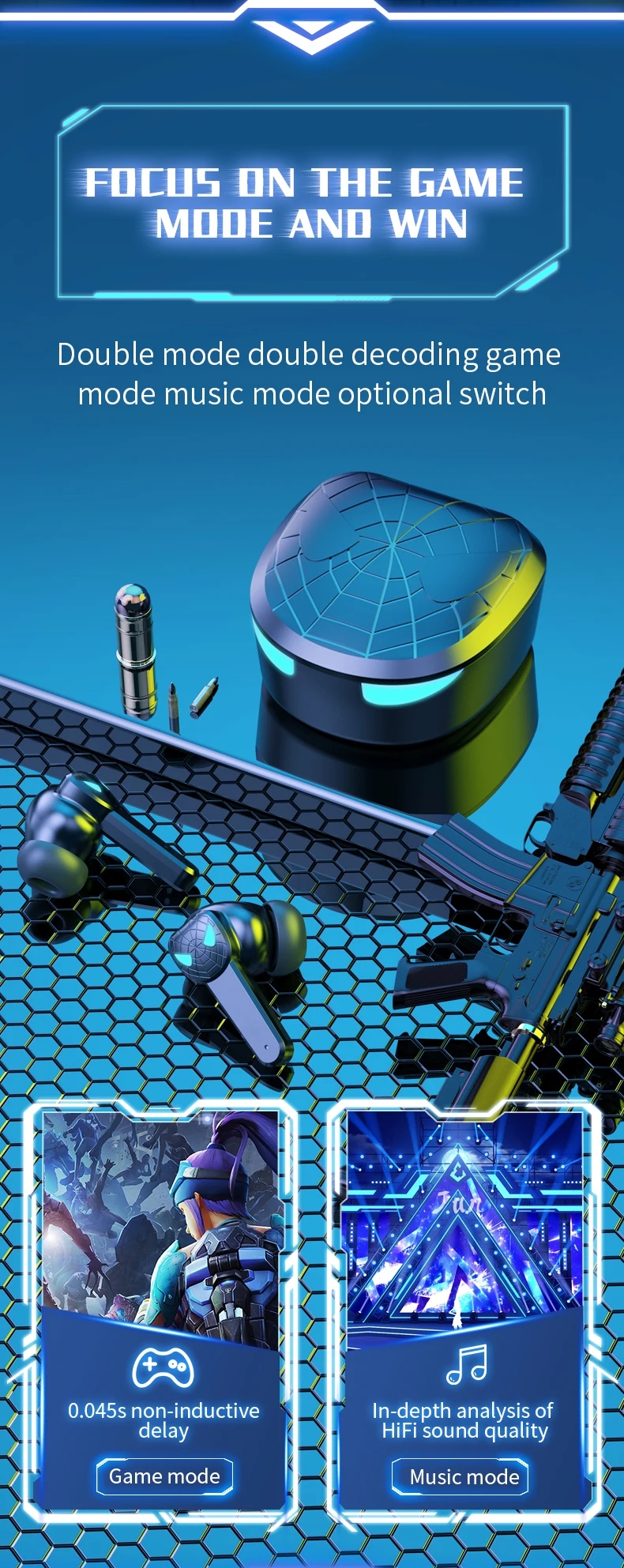 TWS Bluetooth-наушники; Беспроводные наушники; Спортивная игровая г...
