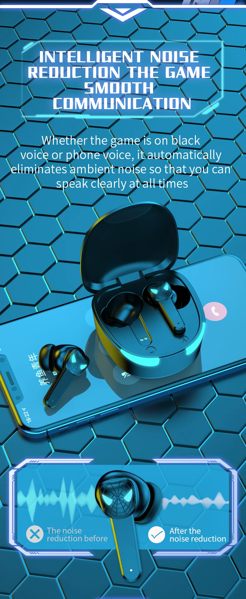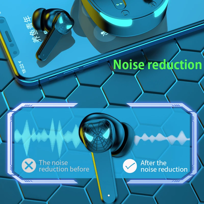 Игровая гарнитура TWS, наушники Bluetooth, беспроводные наушники-вкладыши, спортивсветильник, для электронных видов спорта, с микрофоном для снижения шума