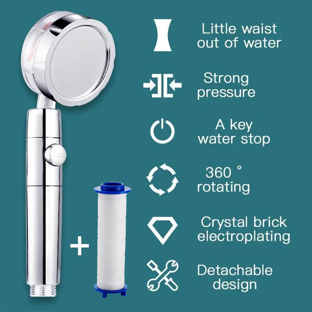* 1. 【Дизайн высокого давления 】душевая головка делает поток воды генерирует поток под давлением через вращающееся колесо, увеличивая скорость потока воды, тем самым увеличивая давление воды. Применяется для низкого давления воды.