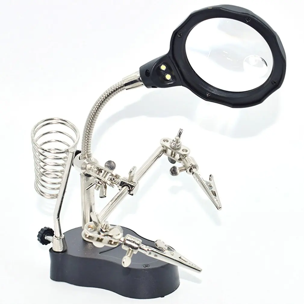 Увеличительное стекло со светодиодный светильник кой, лупа с дополнительным зажимом 3,5x, лупа для рабочего стола, третья рука, инструмент для ремонта и пайки