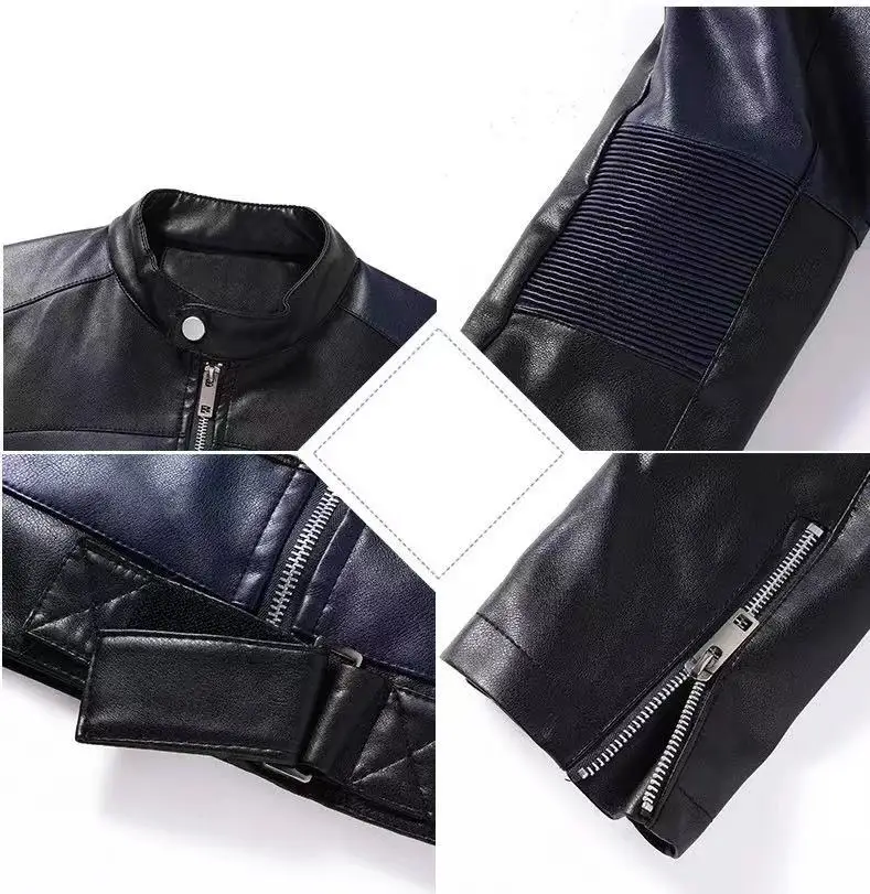 Мужская мотоциклетная кожаная куртка, Новая повседневная модная Бай...