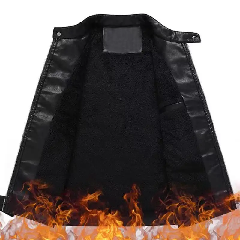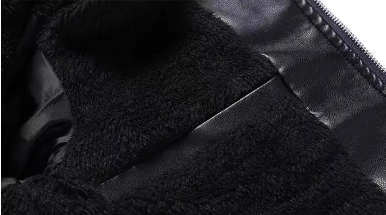 Мужская куртка из искусственной кожи, с флисовой подкладкой, с воро...