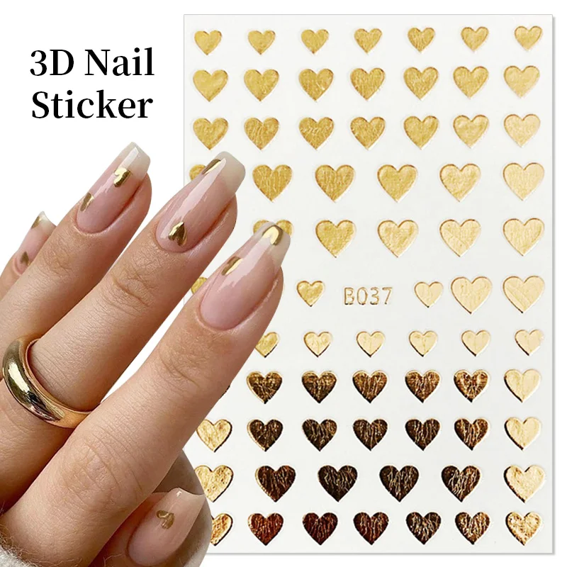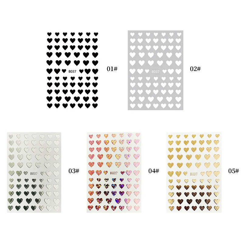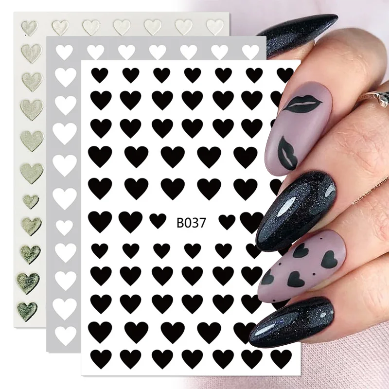 3D наклейки для дизайна ногтей, черные, белые, золотые, с сердечкам...