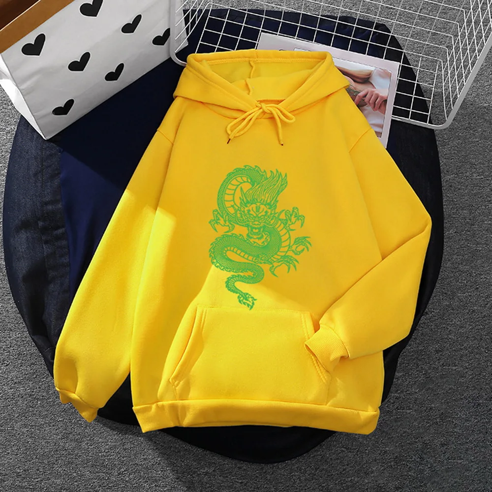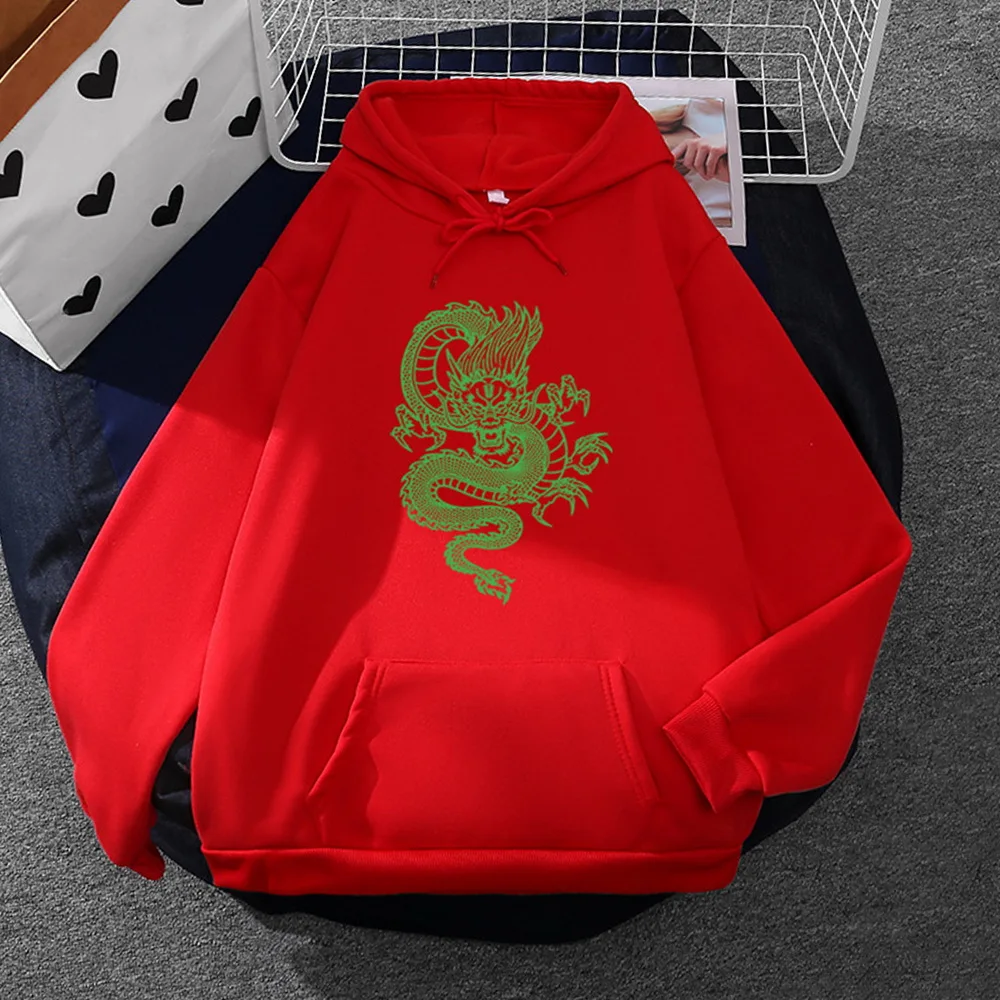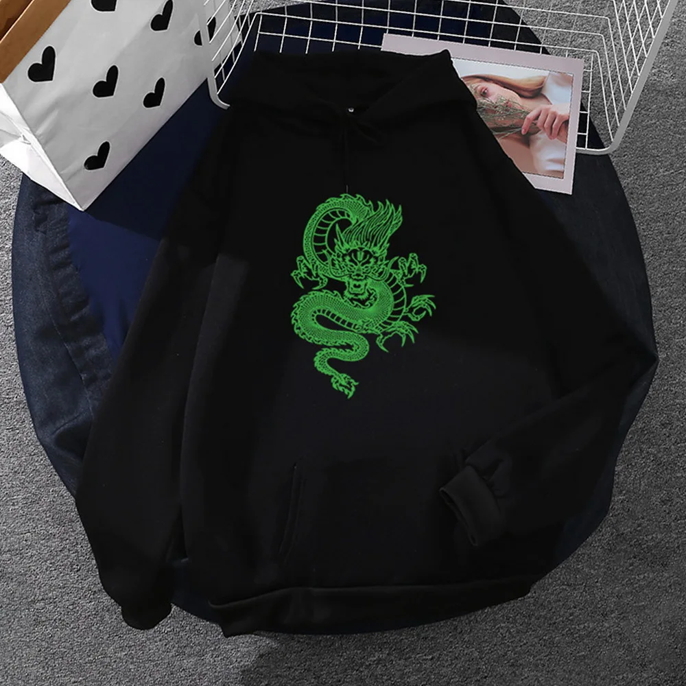 Женская толстовка с капюшоном и принтом дракона, в стиле Харадзюку