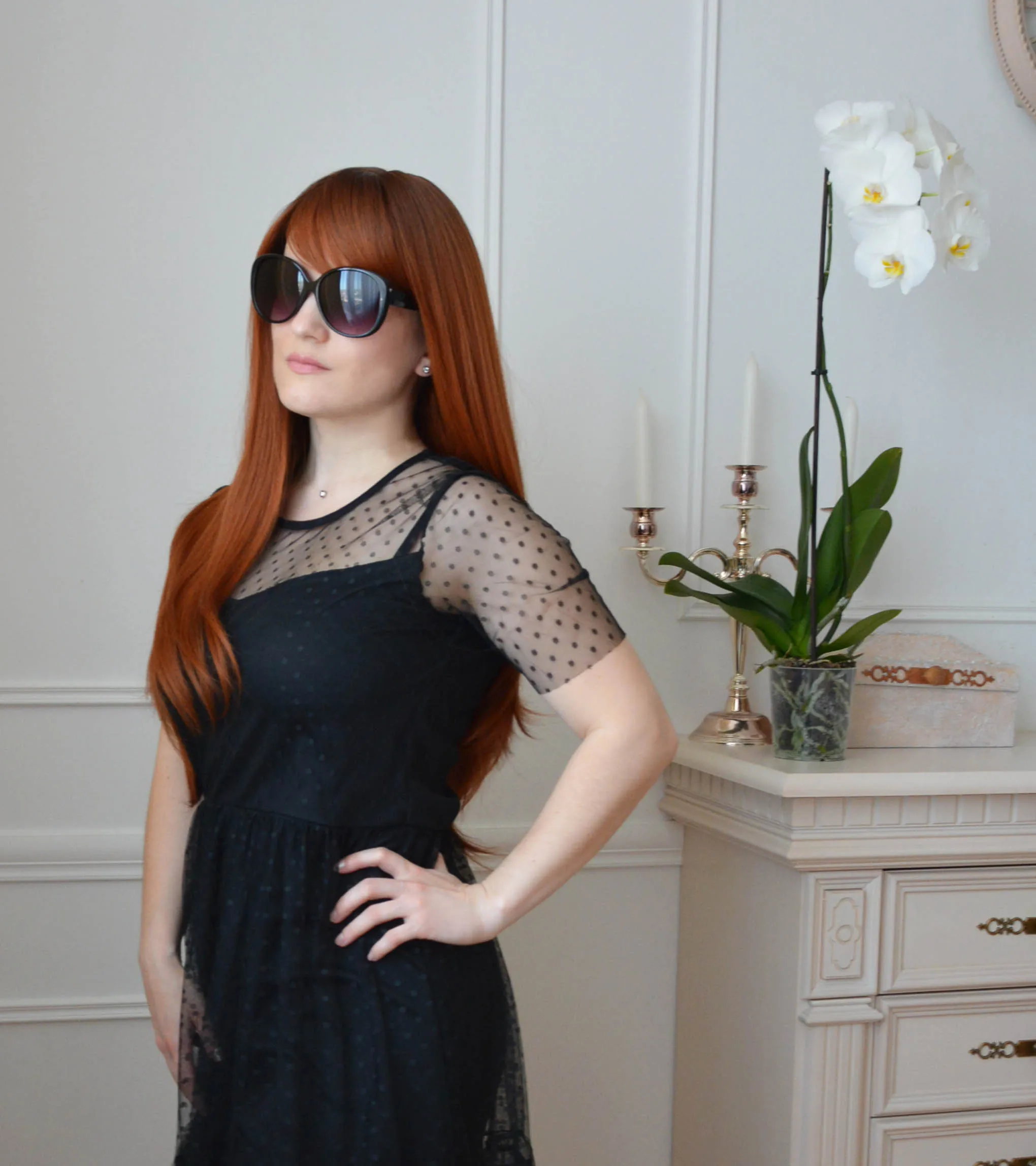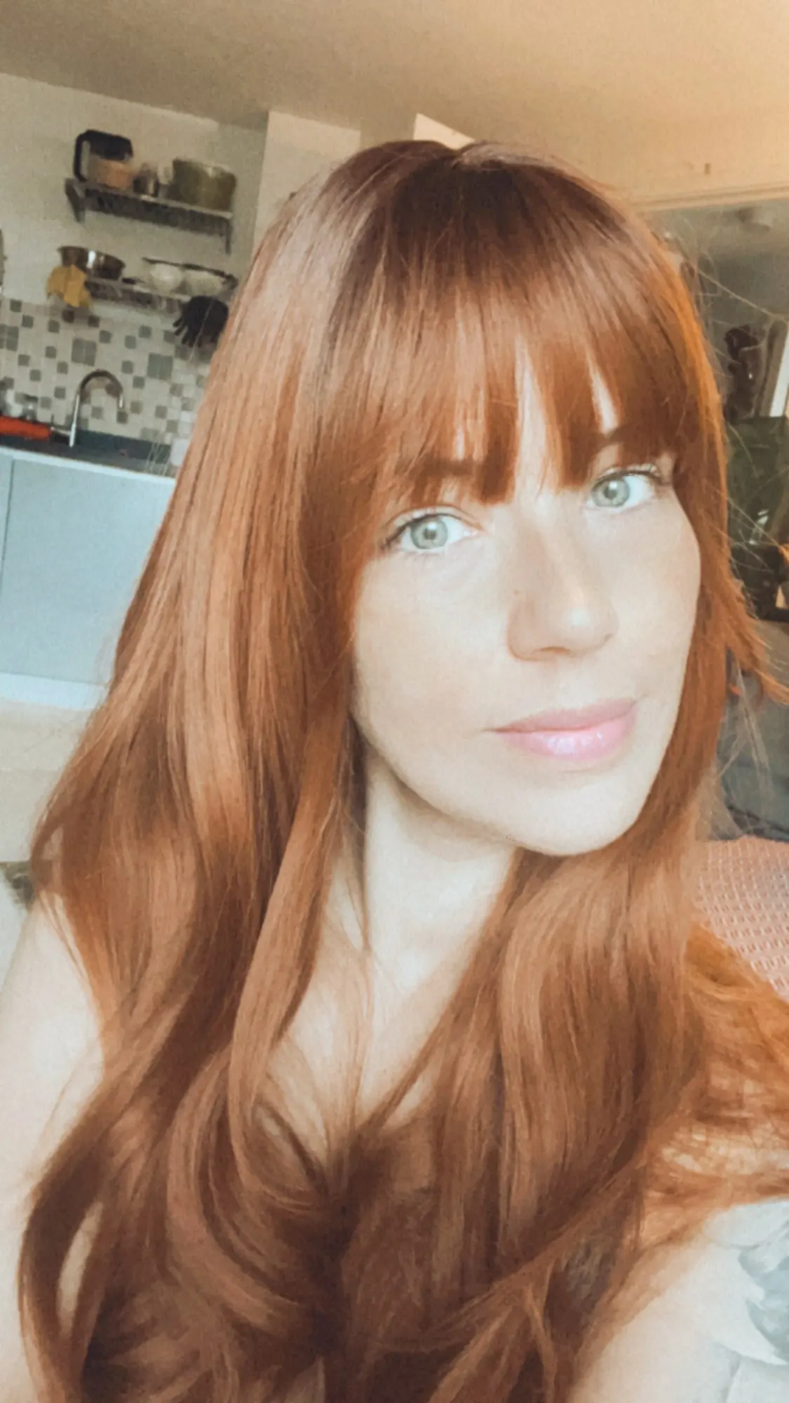 Парик по этой цене выглядит отлично. Челка немного длинная, но легко управлять, вы можете отрезать их или отложить в сторону в любое время. Волосы длинные и тяжелые, но хорошо сидят. У меня много похвал за это.
