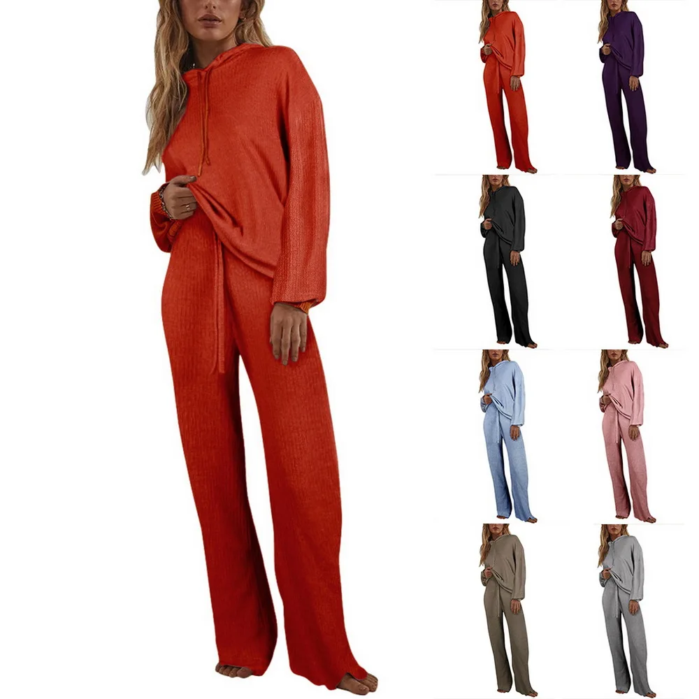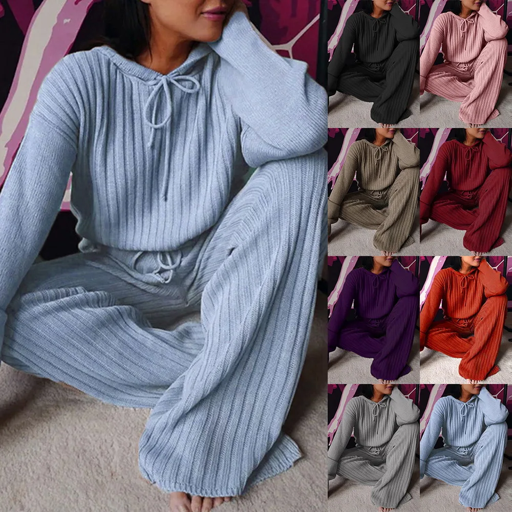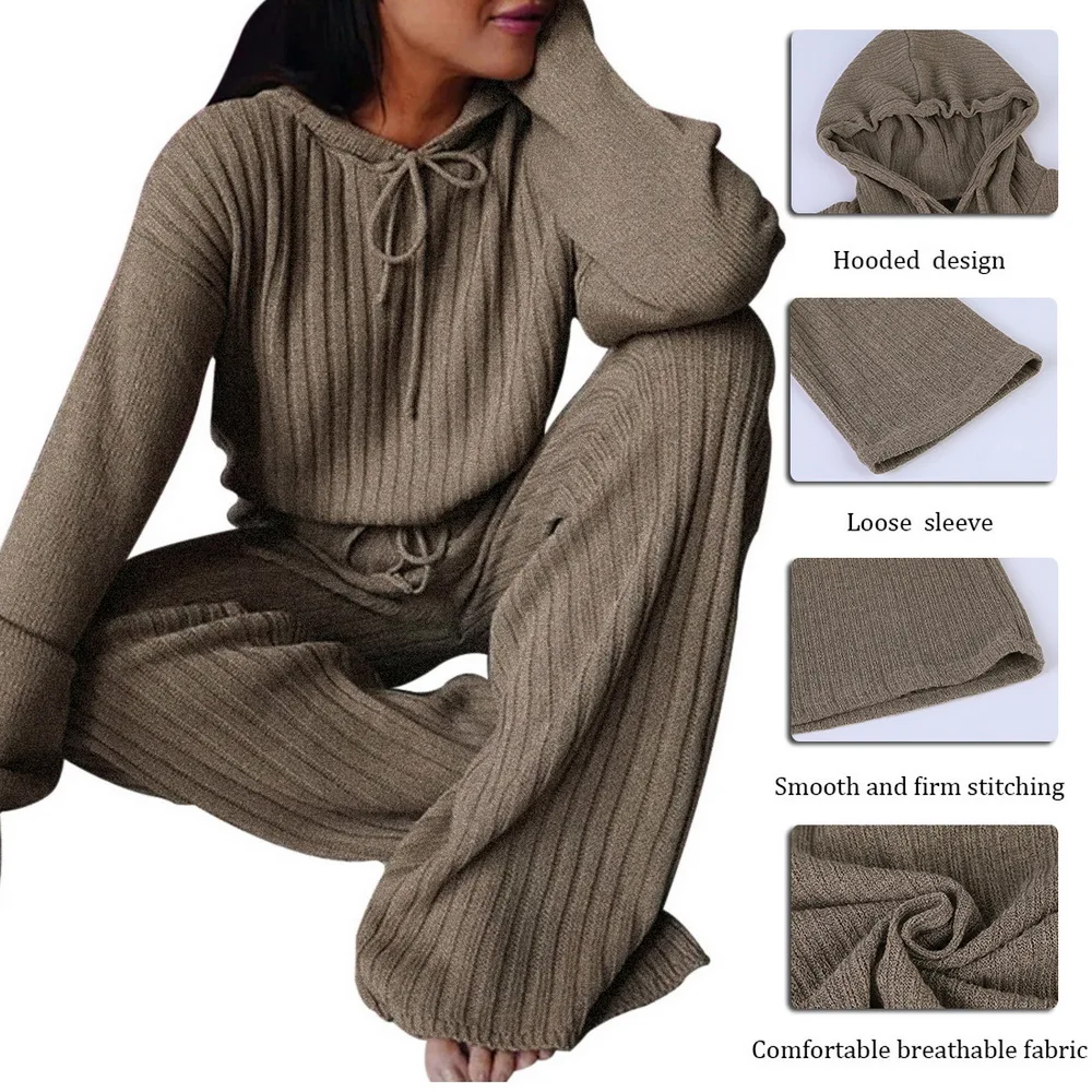 Женский комплект из двух предметов, трикотажный свитер и штаны, обл...