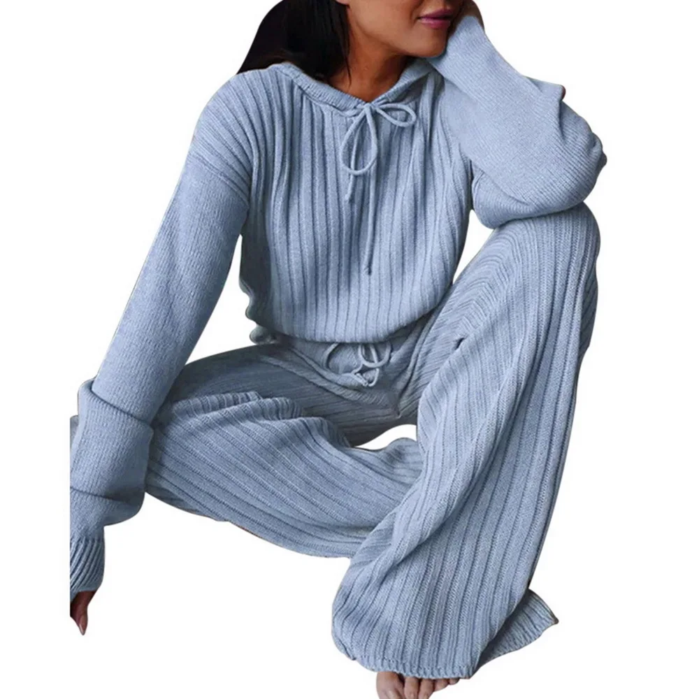 Зимний вязаный женский костюм Y2k, свитер и брюки, комплект из двух...