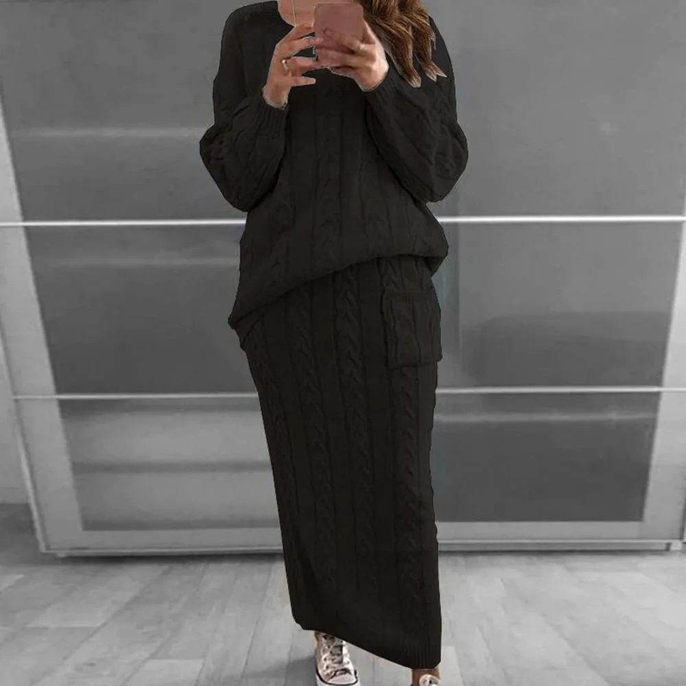 Женский Теплый трикотажный свитер, однотонный комплект из 2 предметов, пуловер с длинным рукавом и вязаная юбка, зима 2021