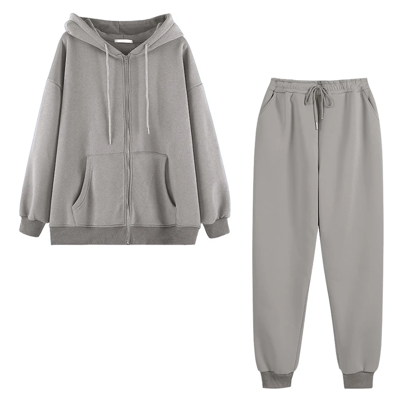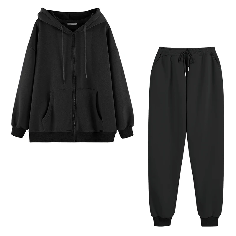 Женские толстовки, спортивный костюм, Осенний однотонный костюм большого размера с спортивными штанами, зимний свободный флисовый свитшот на молнии, костюм из двух предметов, спортивная одежда