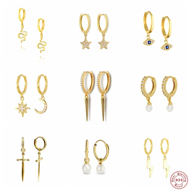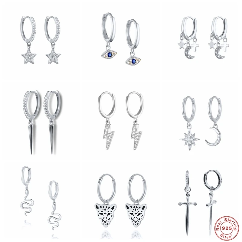 Женские серьги-капли, из кулон в виде ягоды стерлингового серебра 925 пробы, с цирконом, звездой, луной, мечом, глазом, змеей, Серебряный пирсинг